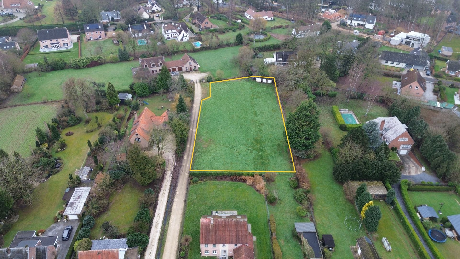 À vendre – Terrain à bâtir situé rue des Champles, à Bierges, dans un lotissement privé exclusif de seulement 3 lots, accessible via un portique privé.