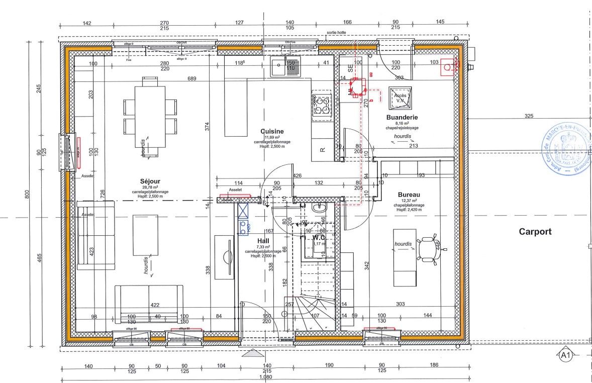 Au rez-de-chaussée vous trouverez un hall d’entrée un WC séparé un bureau une buanderie un espace cuisine à aménager selon vos envies ainsi qu’un grand séjour lumineux donnant sur le jardin