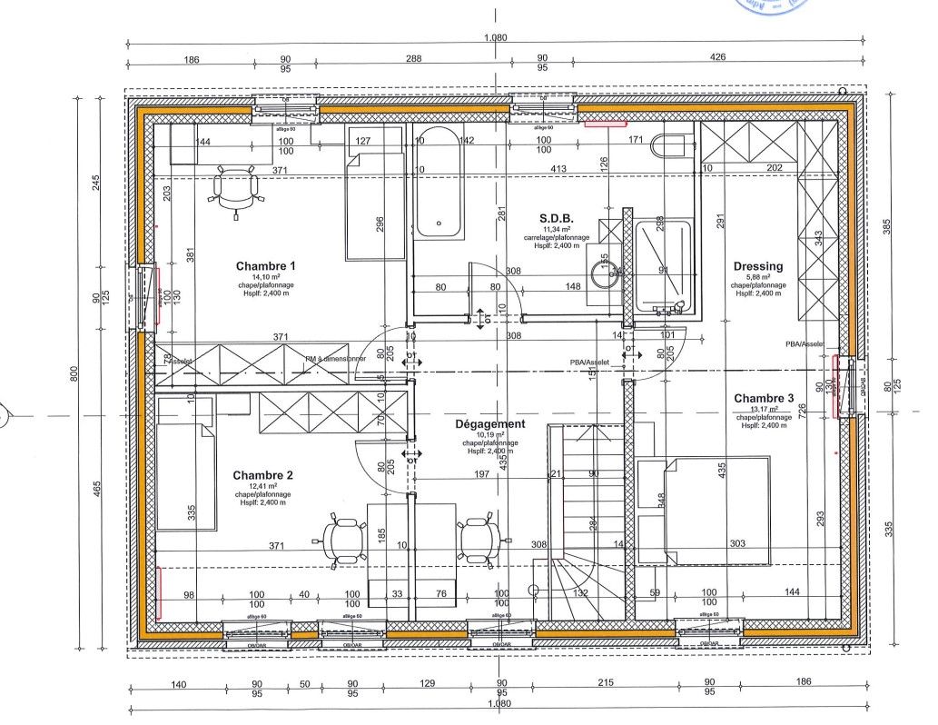 À l’étage la maison dispose de trois chambres ainsi qu’une salle de bain entièrement équipée