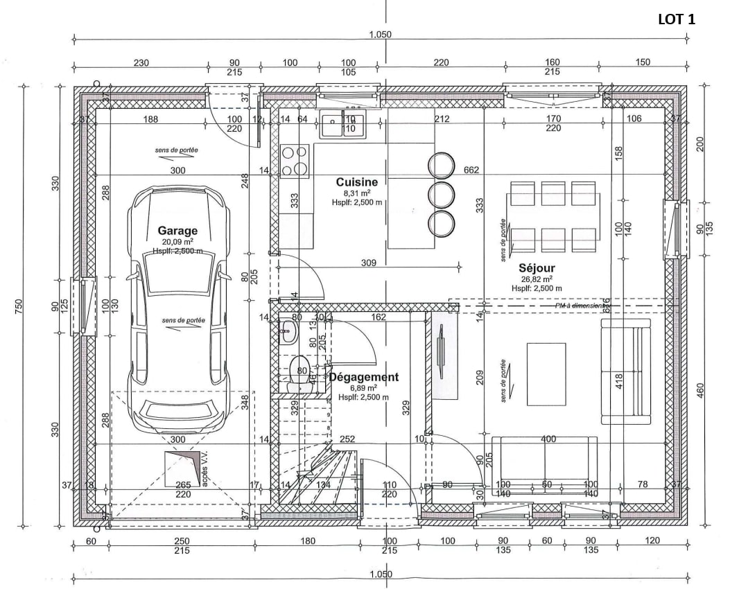 Superficie du terrain 711 m²
