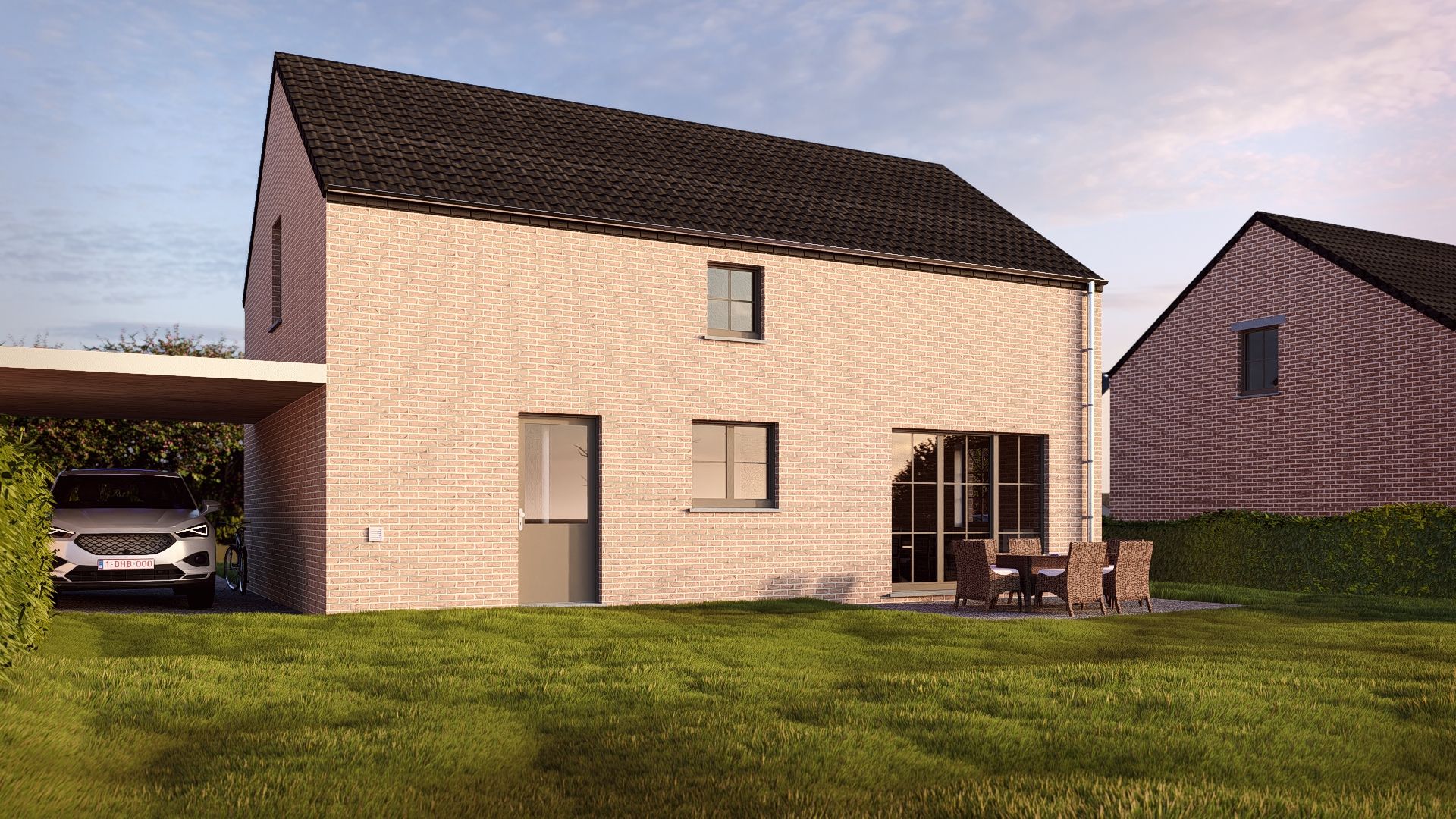 Elle se compose au rez-de-chaussée d’un hall d’entrée, d’un WC séparé, d’un lumineux et spacieux séjour avec espace cuisine ouvert (un chèque cuisine d’une valeur de 10 000€ TVAC est offert à l’achat de la maison), d’une chambre/bureau et une buanderie.