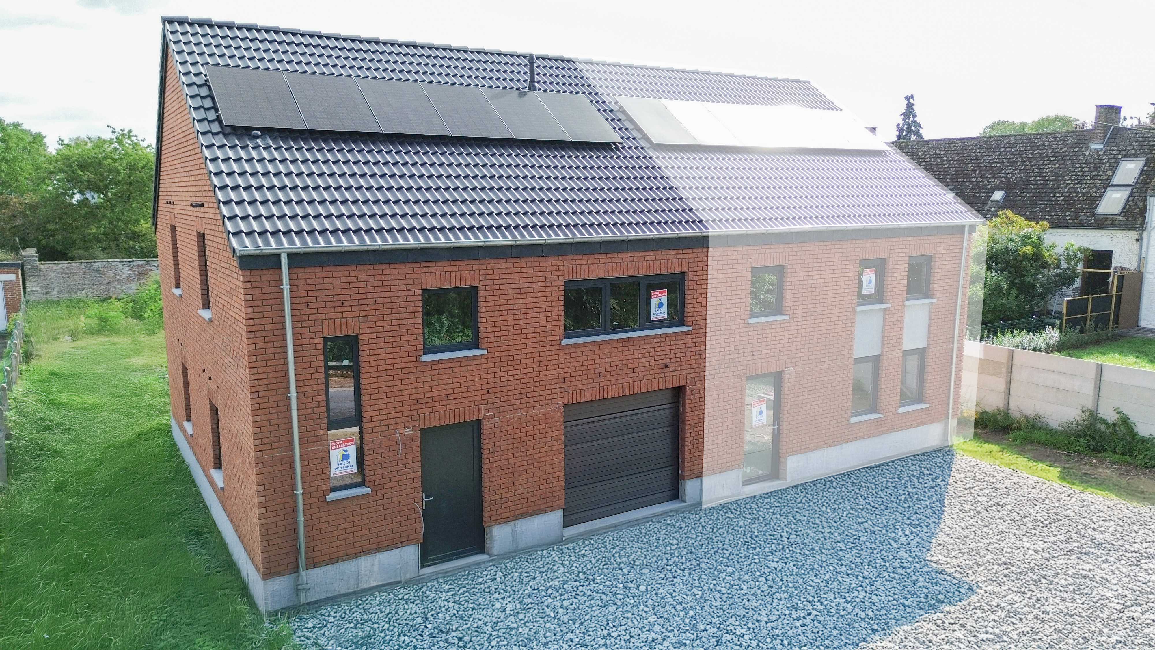 Type de châssis Châssis en PVC, double vitrage super isolant, porte de garage sectionnelle isolée.