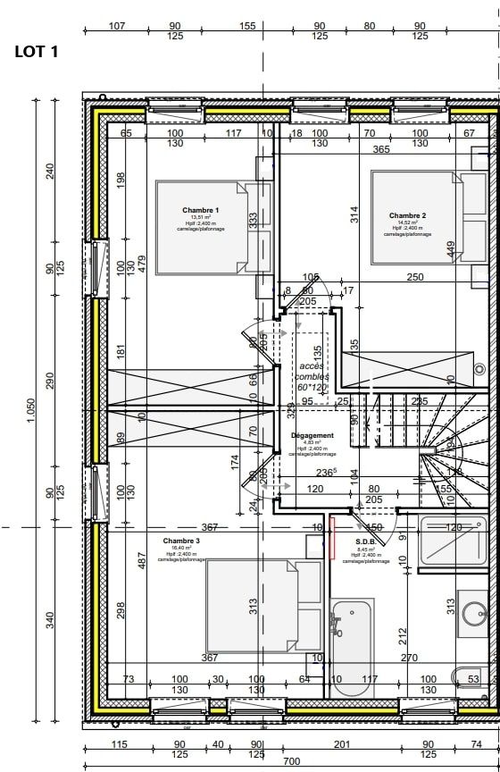 Isolation toiture 22cm de laine minérale.