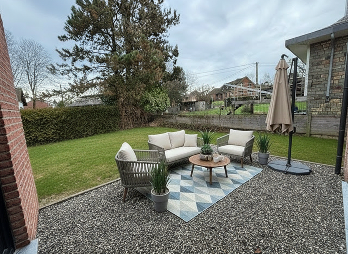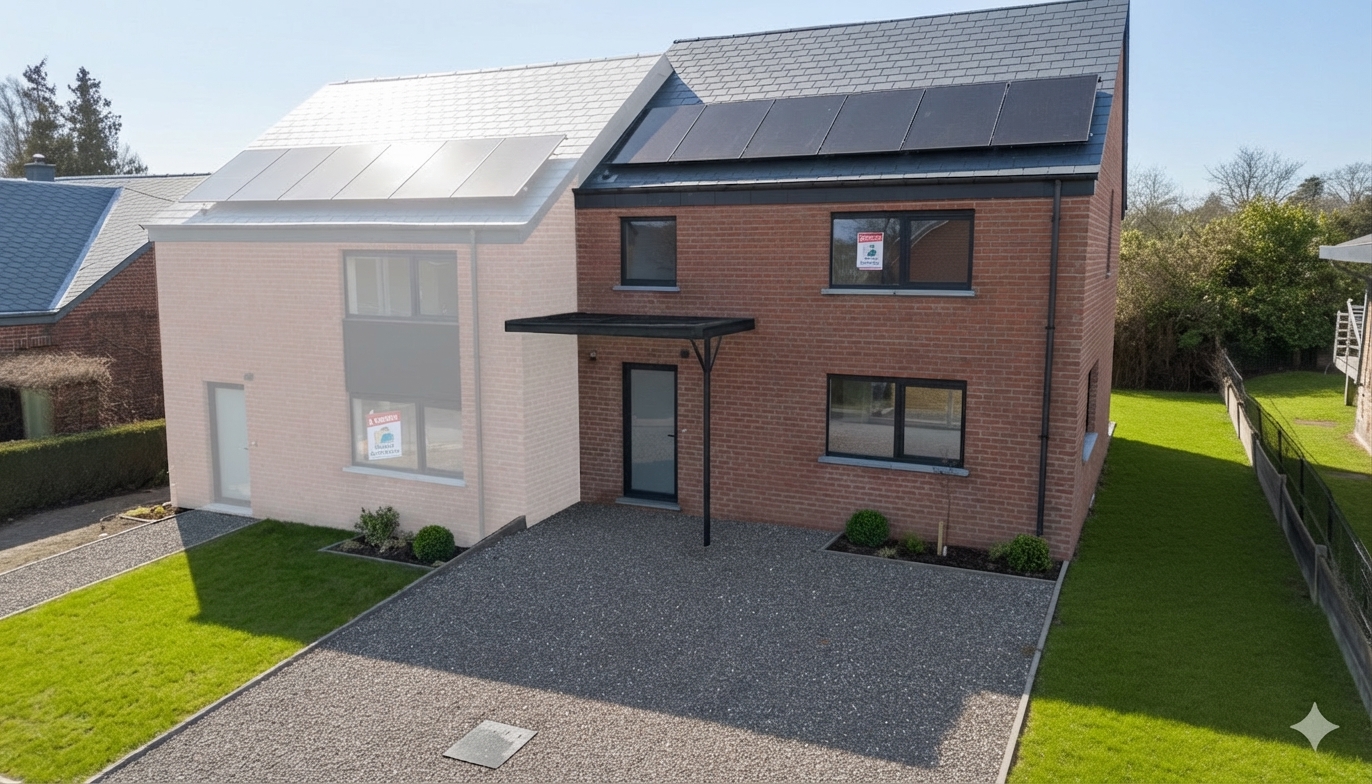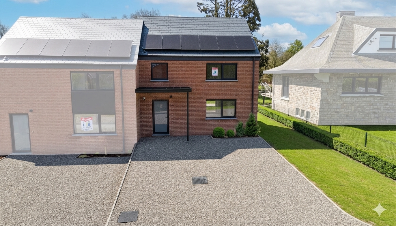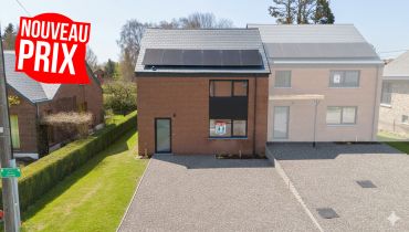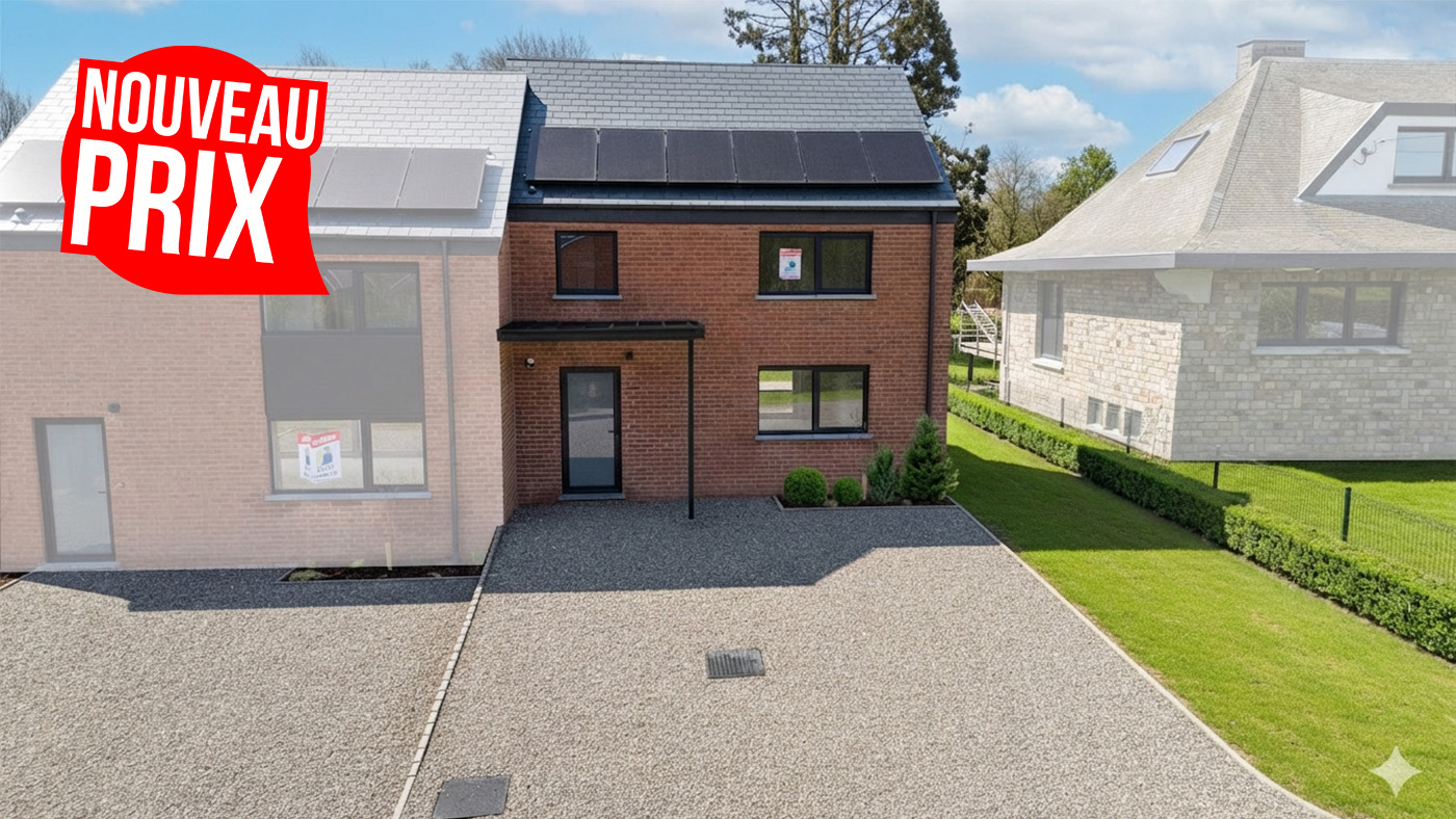 Située à Marloie, cette maison neuve s’insère dans un quartier résidentiel bien établi, apprécié pour sa tranquillité et sa proximité immédiate avec les infrastructures de la ville de Marche-en-Famenne. L’environnement est structuré, avec une desserte aisée vers les principaux points d’intérêt de la région. La gare de Marloie est accessible à +/- 700 mètres, ce qui permet une liaison rapide vers Libramont, Namur ou Liège. La N4 se rejoint en +/- 3 minutes. Plusieurs espaces verts et équipements culturels sont également accessibles à pied. Le bien présente une configuration trois façades développant une surface habitable de +/- 130 m² sur un terrain de +/- 2,90 ares. La terrasse orientée au nord est intégrée au volume bâti. Le projet ne prévoit pas de garage, mais bénéficie d’un espace de stationnement privatif à l’avant. Au rez-de-chaussée, le hall d’entrée distribue un séjour de +/- 40 m² comprenant un espace salon et salle à manger, une cuisine ouverte et une buanderie. À l’étage, le hall de nuit dessert une chambre parentale de +/- 14 m², deux autres chambres de +/- 12 m² et +/- 11 m², ainsi qu’une salle de bain équipée d’une douche. L’équipement technique comprend un système de chauffage central au gaz et 6 panneaux photovoltaïques. Le bâtiment présente une performance énergétique de catégorie A