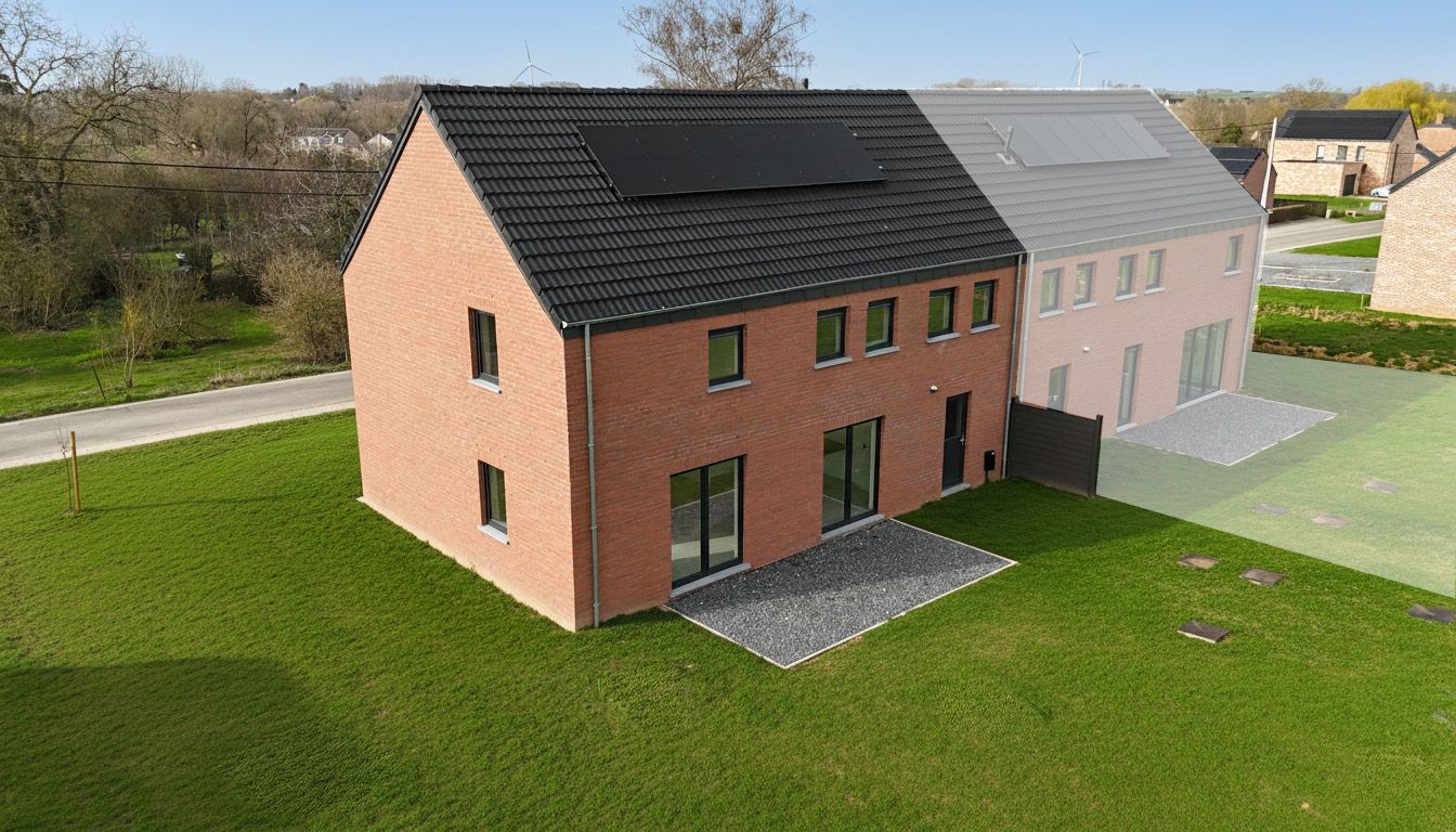 Profitez d’un bien neuf avec isolation poussée, d’une chaudière au gaz Vaillant, de 6 panneaux photovoltaïques et qui offre un PEB A garantissant confort, économies d’énergie et respect de l’environnement assurant un cadre de vie agréable et économe.