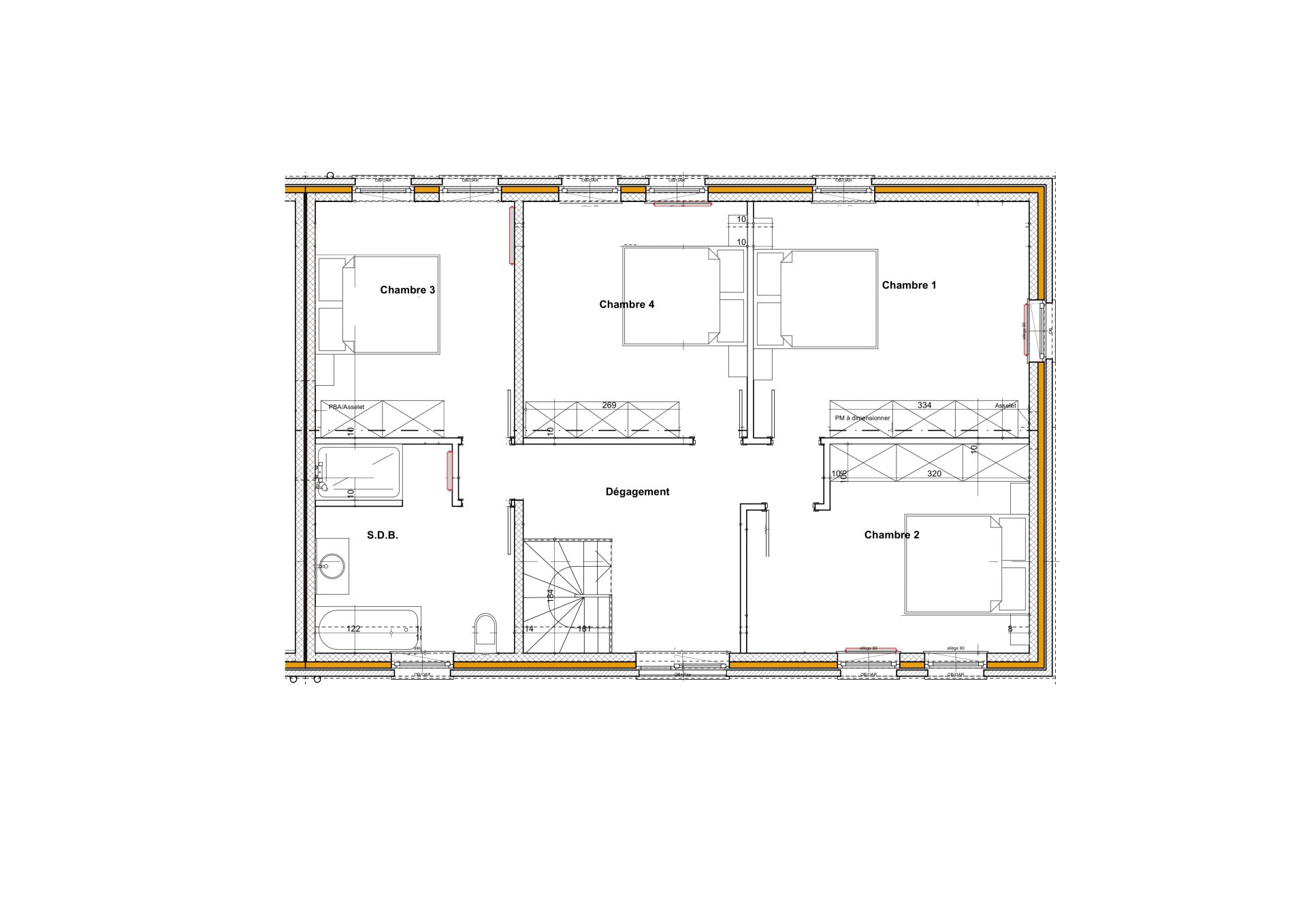 A l’étage, vous trouverez un hall de nuit avec espace bureau de +/- 11m² donnant accès à 4 belles chambres (12, 13, 14 et 16m²) et une salle de bain (baignoire, douche, meuble vasque, WC) de +/- 10m².