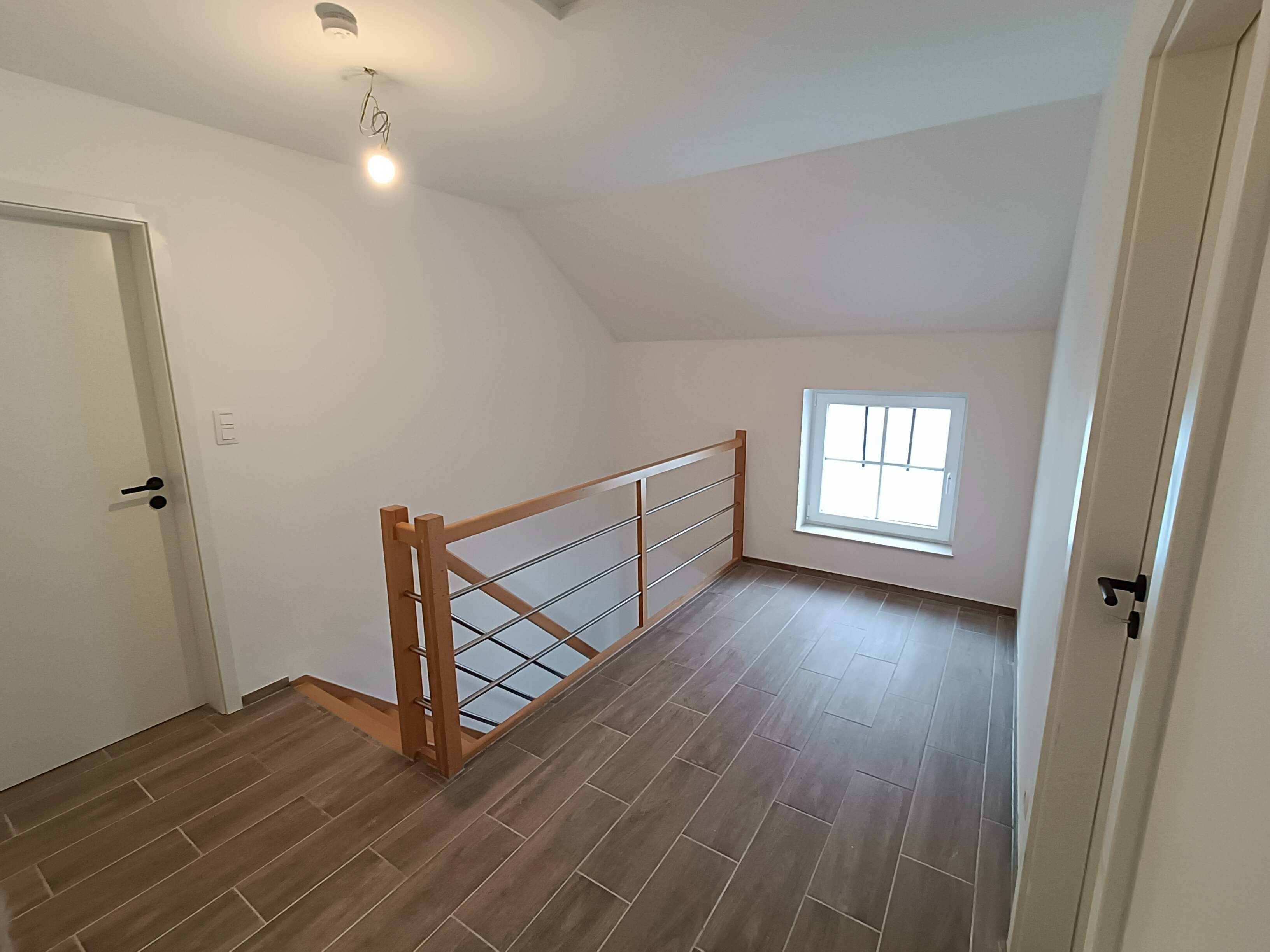 A l’étage, hall de nuit avec espace bureau de +/- 8 m², 1 chambre parentale avec espace dressing de +/- 18 m², 2 chambres de +/- 13,5 m² et +/- 16 m², ainsi qu’une salle de douche de +/- 8 m².