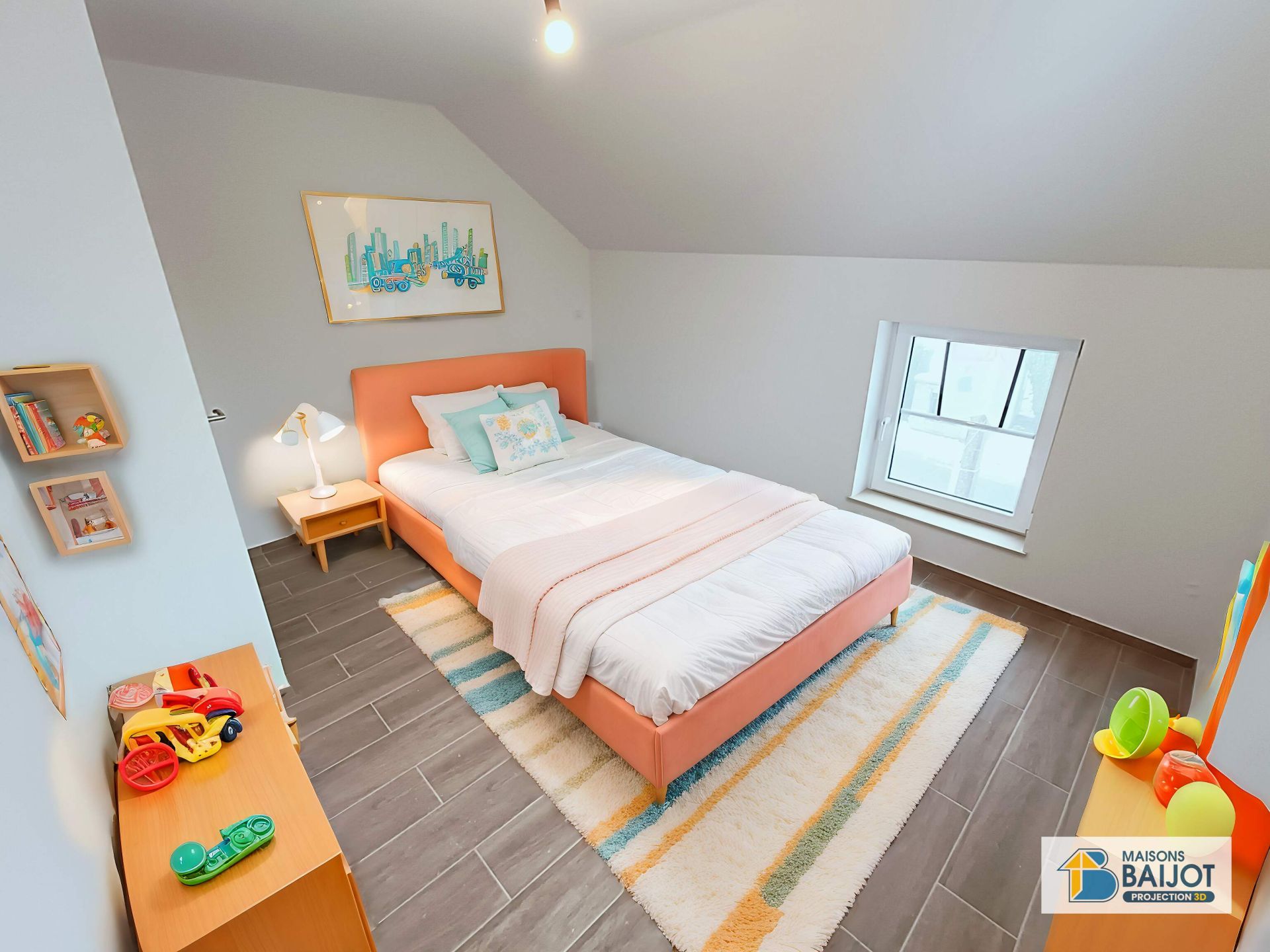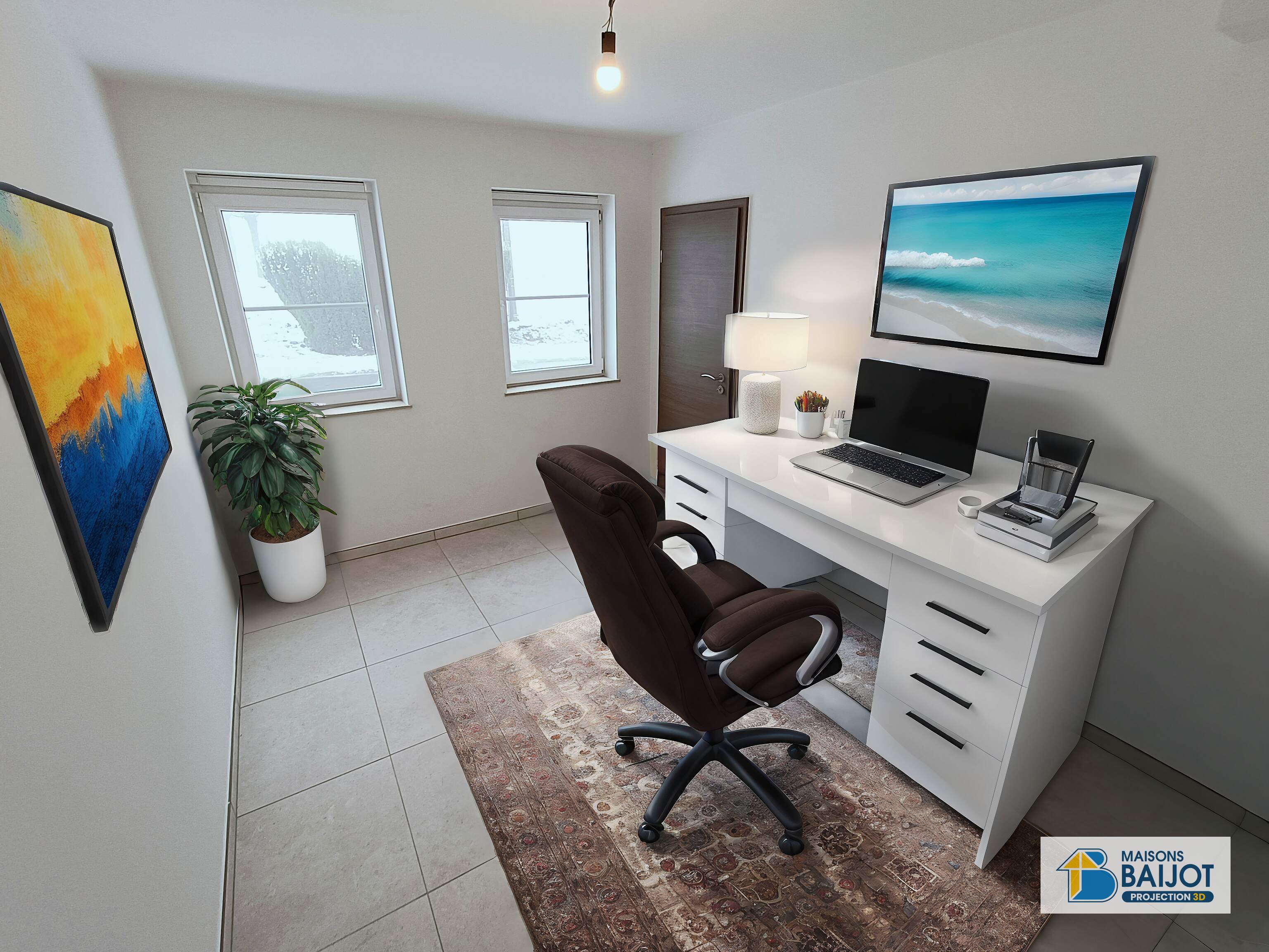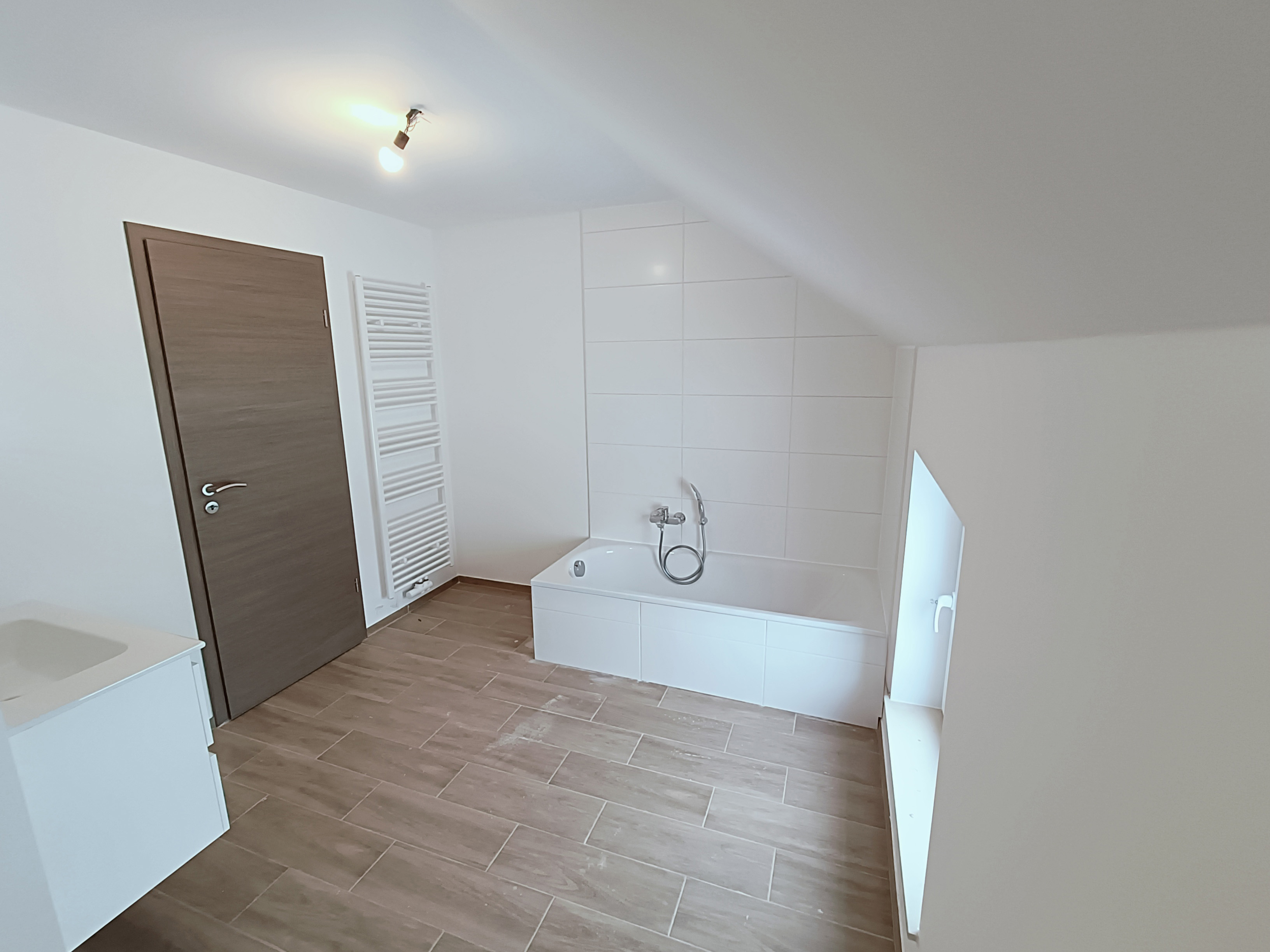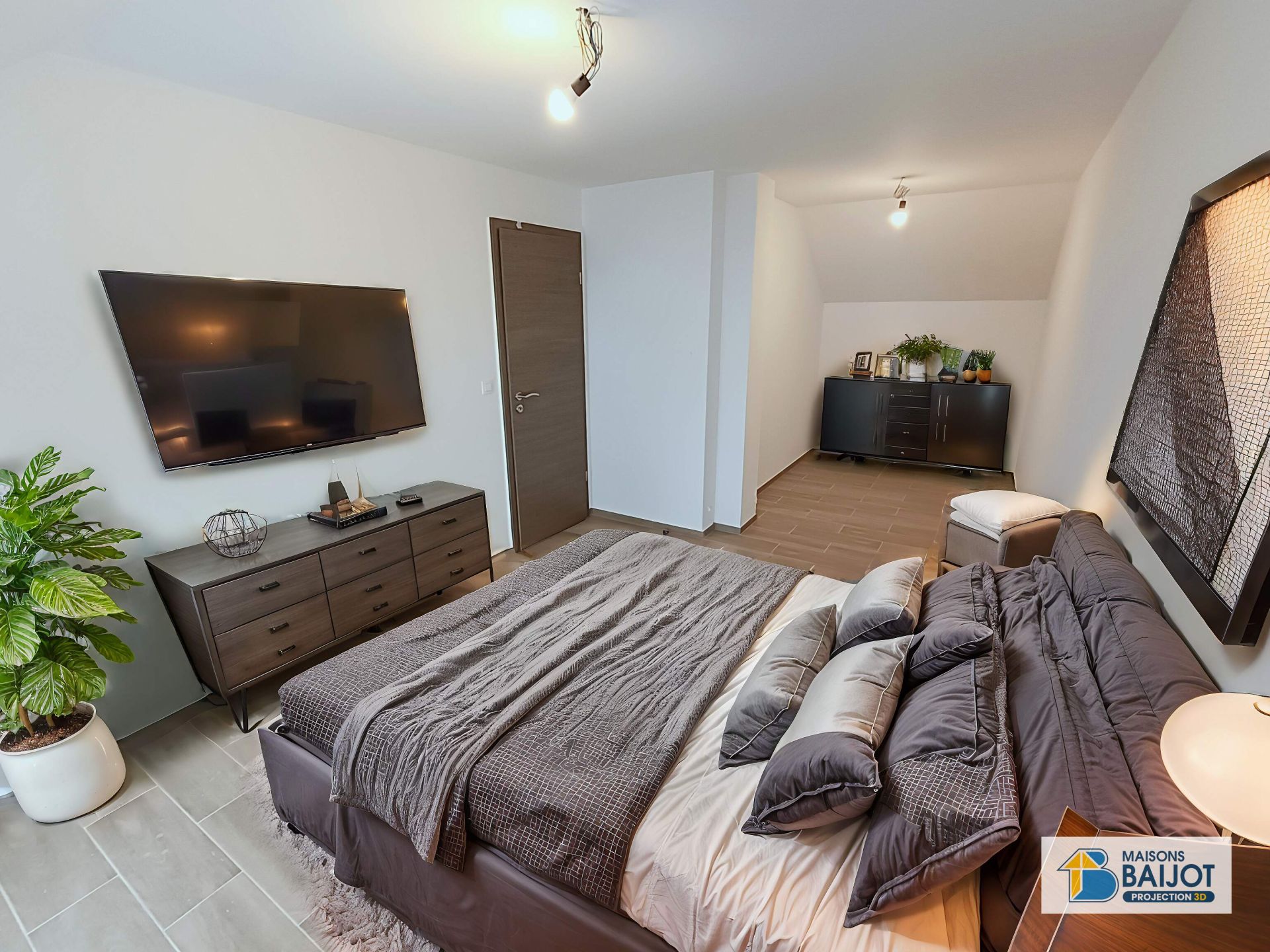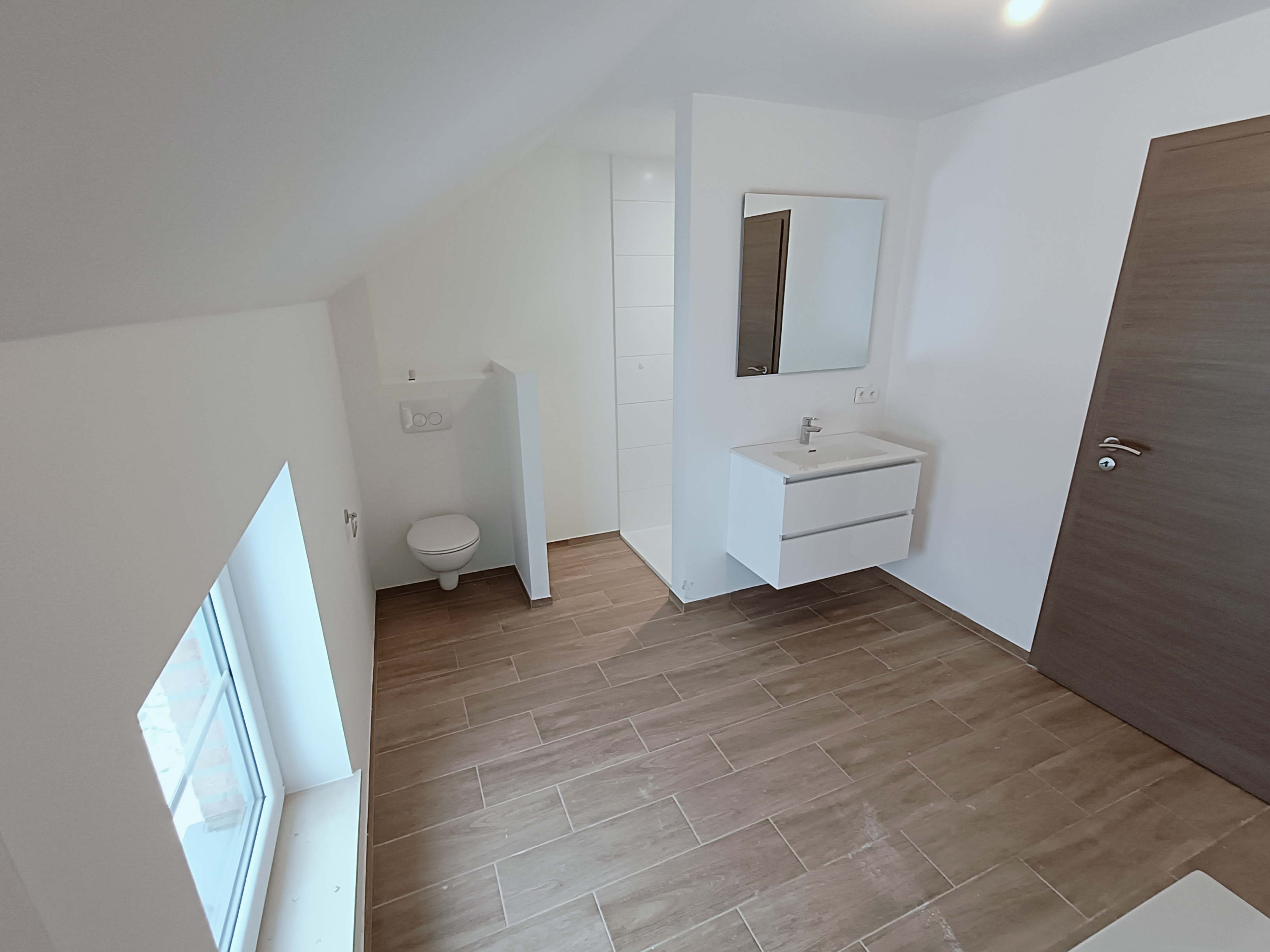 A l’étage, hall de nuit avec espace bureau de +/- 5 m², 1 chambre parentale avec espace dressing de +/- 17 m², 2 chambres de +/- 12 m², ainsi qu’une salle de bain de +/- 10,5 m².