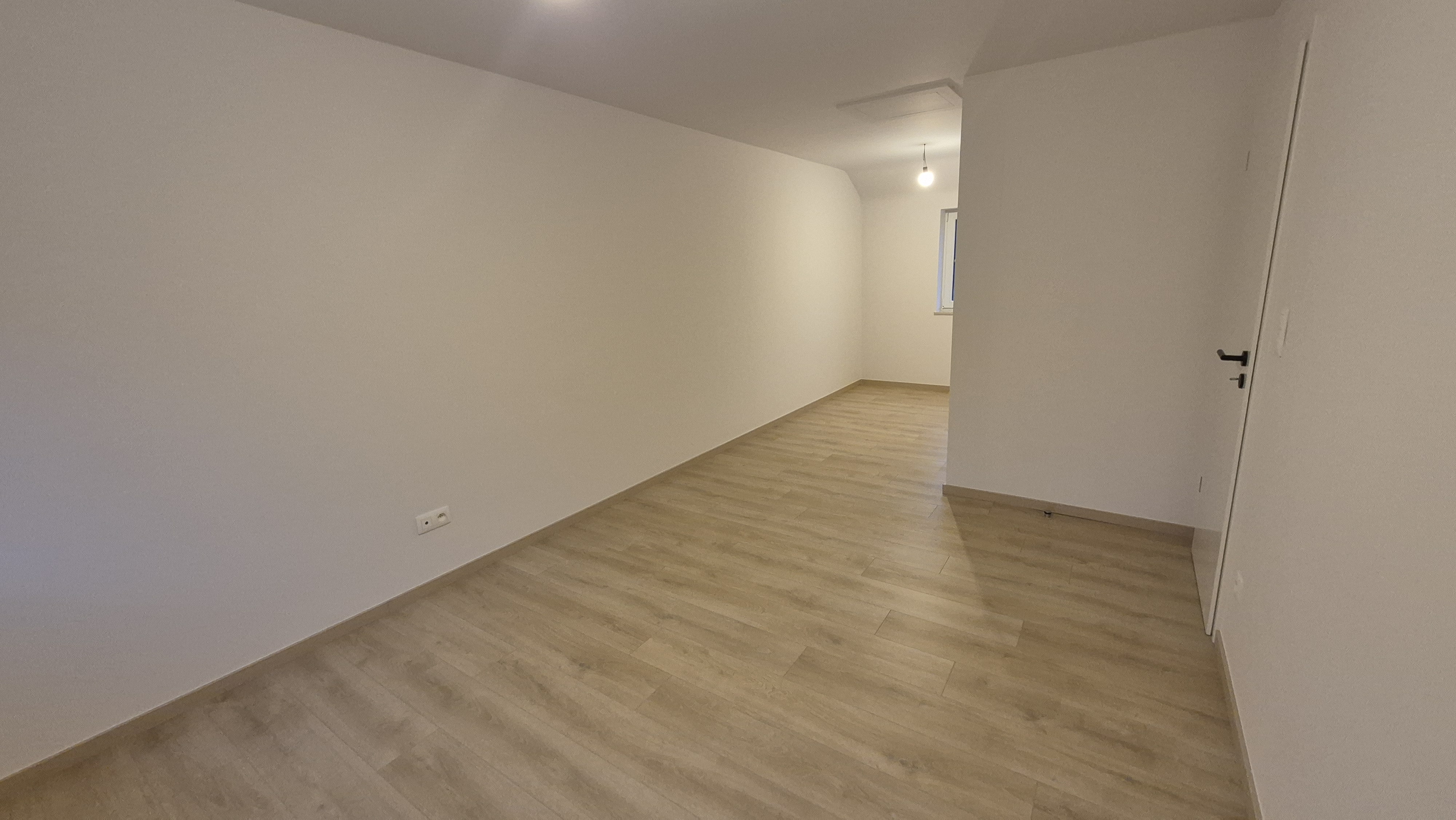 À l’étage : trois chambres confortables de +/-18 m², +/-15 m² et +/-12 m², ainsi qu’une salle de bain de +/-7 m² équipée d’une douche, d’une baignoire, d’un meuble lavabo et d’un WC.