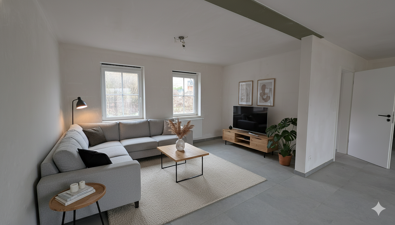 La maison développe une surface habitable de +/-150 m² sur un terrain de +/-550 m². Elle dispose d’un garage de +/-21 m² et d’une terrasse orientée est. Le séjour lumineux comprend une cuisine ouverte et offre un bel espace de vie. Une buanderie complète le rez-de-chaussée.