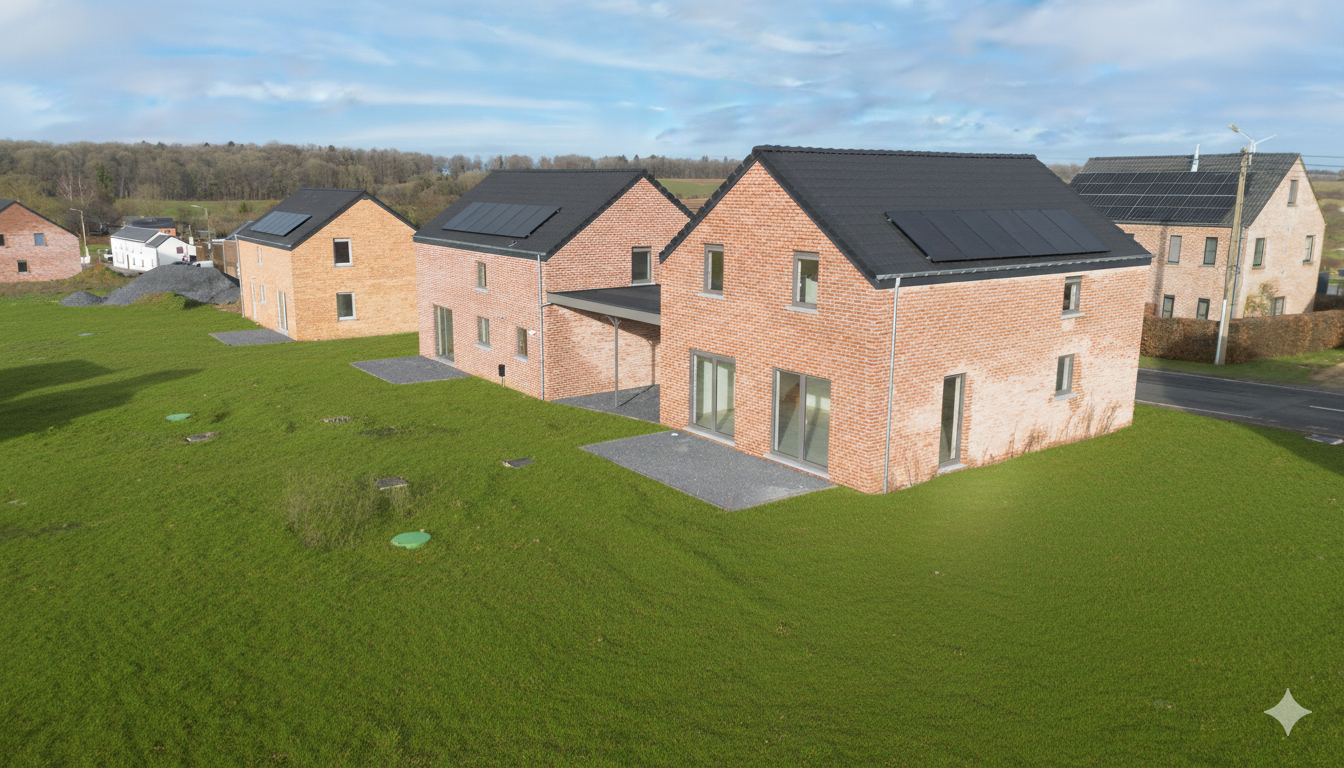 Profitez d’un bien neuf avec isolation poussée, d’une chaudière au gaz Vaillant, de 6 panneaux photovoltaïques et qui offre un PEB A garantissant confort, économies d’énergie et respect de l’environnement assurant un cadre de vie agréable et économe.