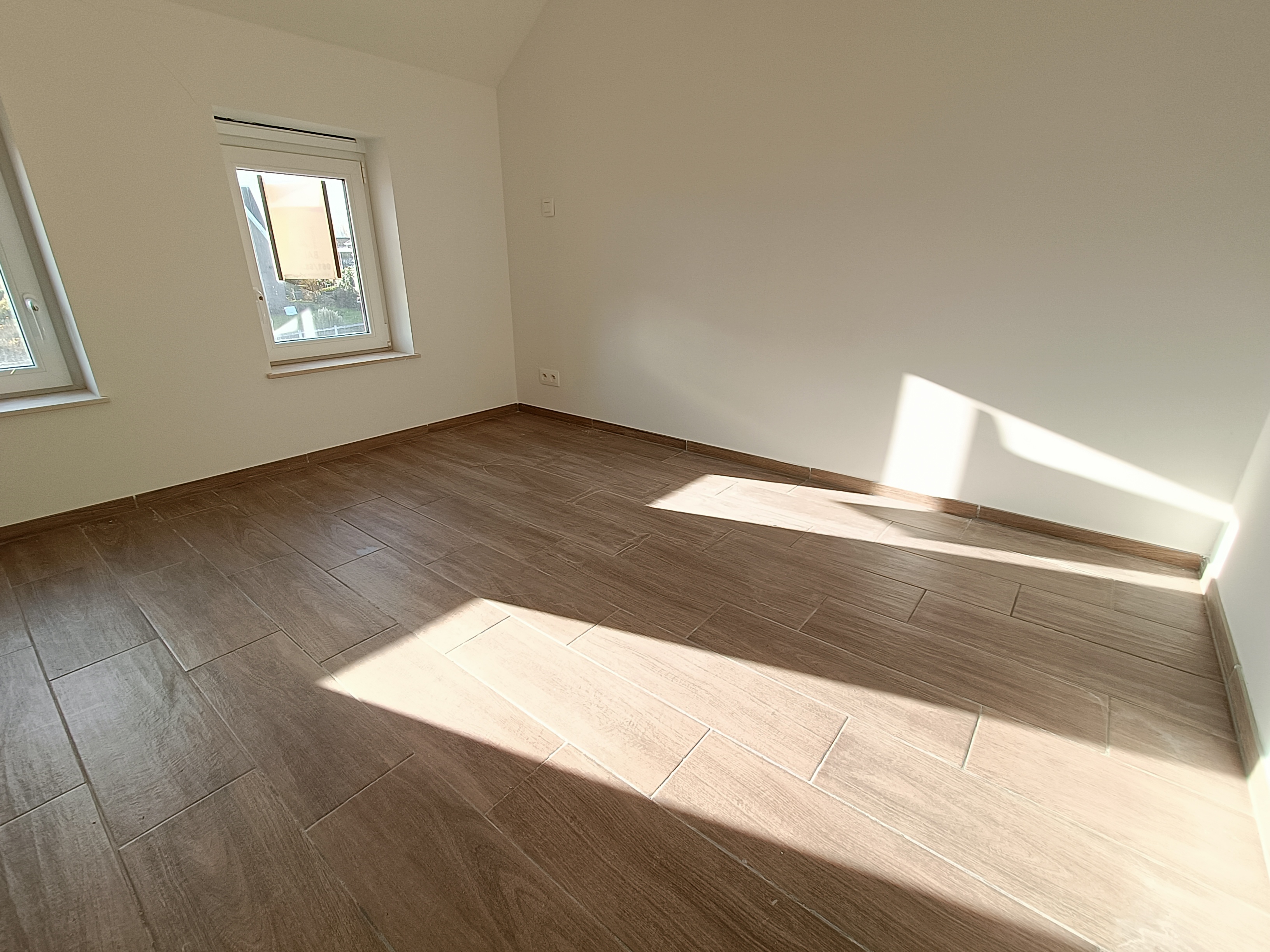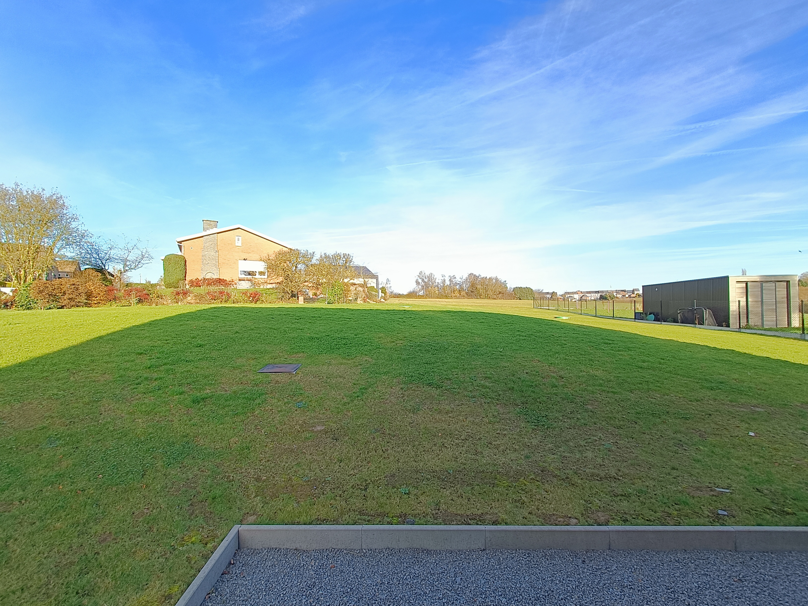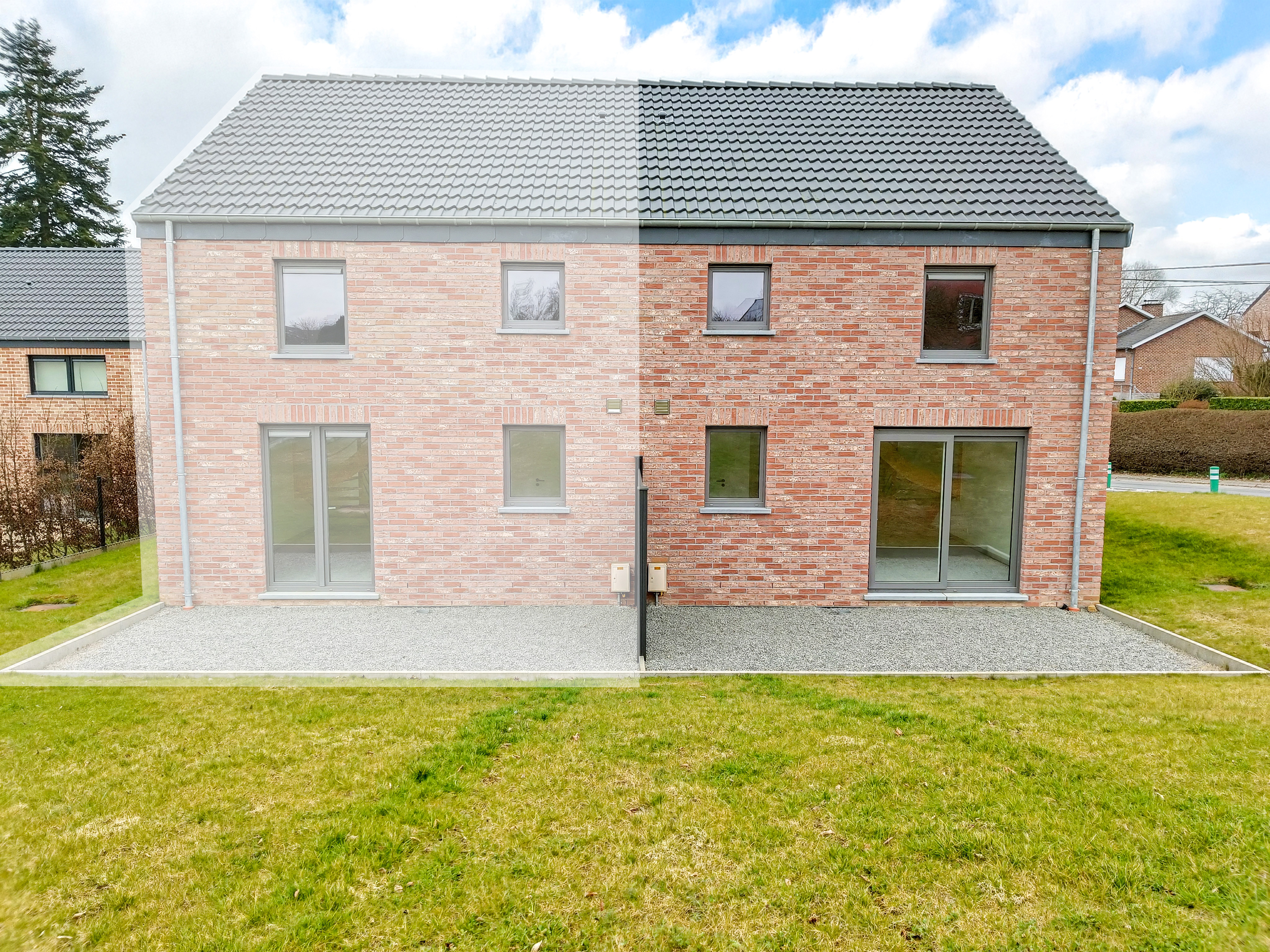 Le bien est une maison neuve 3 façades, implantée sur un terrain d’environ 4,43 ares, avec une terrasse de ± 15 m² orientée nord. La surface habitable atteint ± 102 m² et l’ensemble comprend 1 place de parking extérieure + 1 place carport.