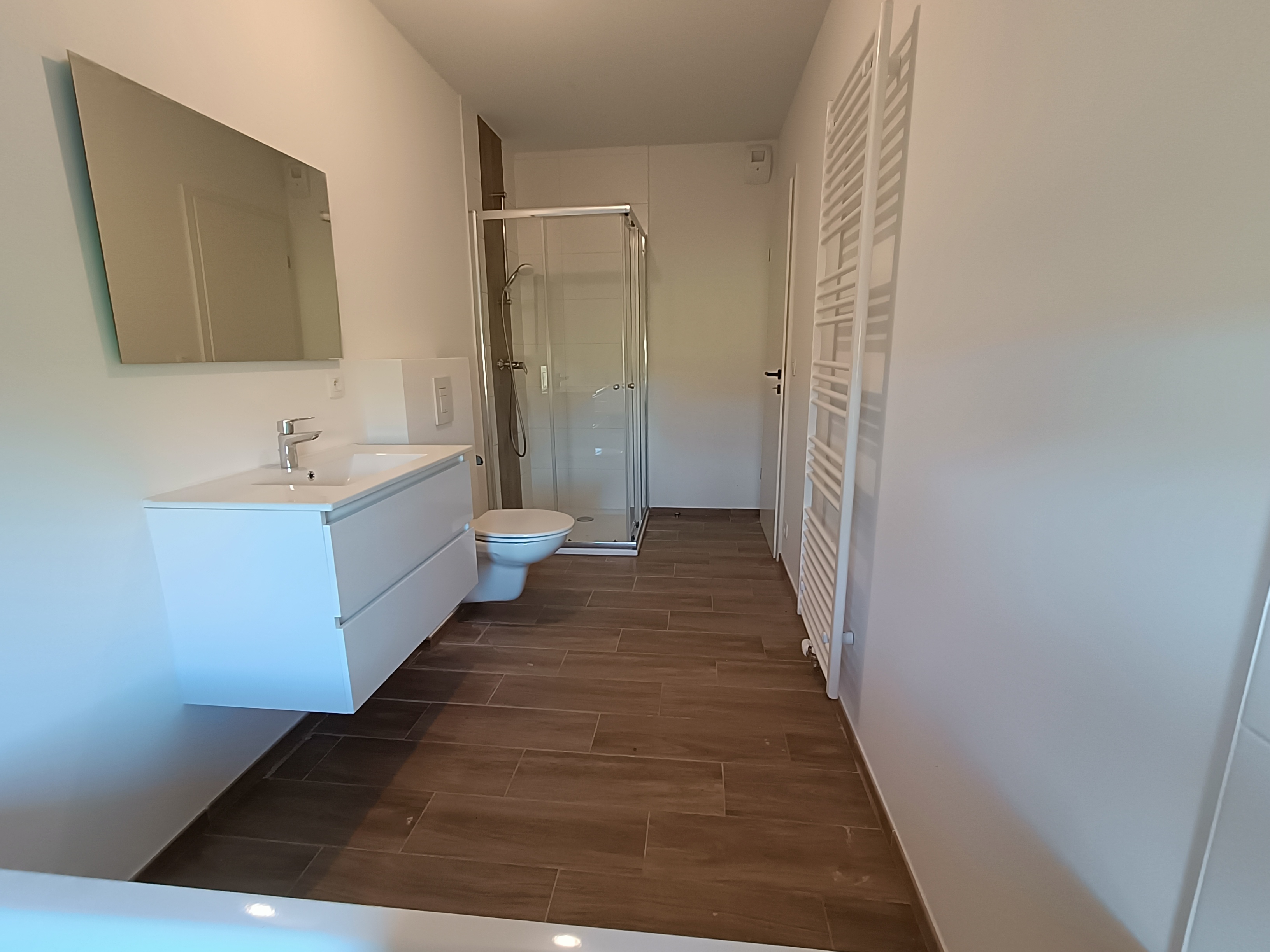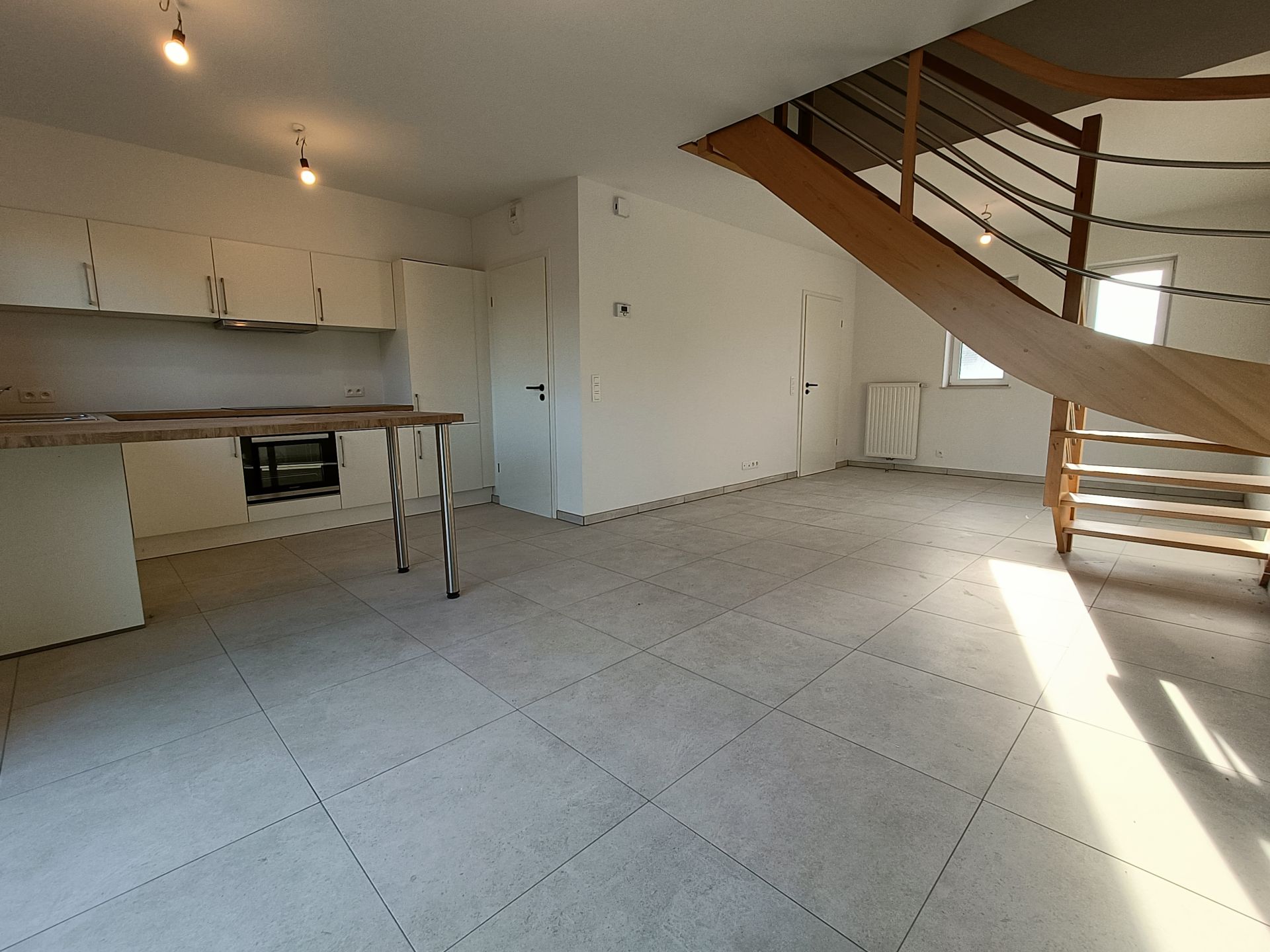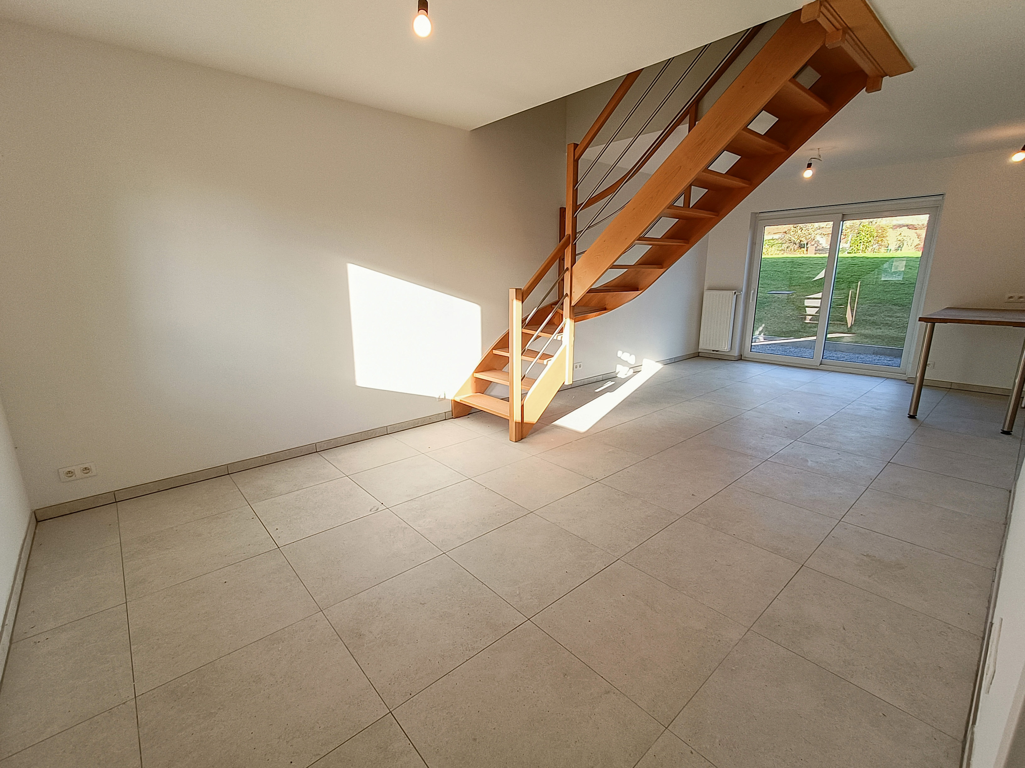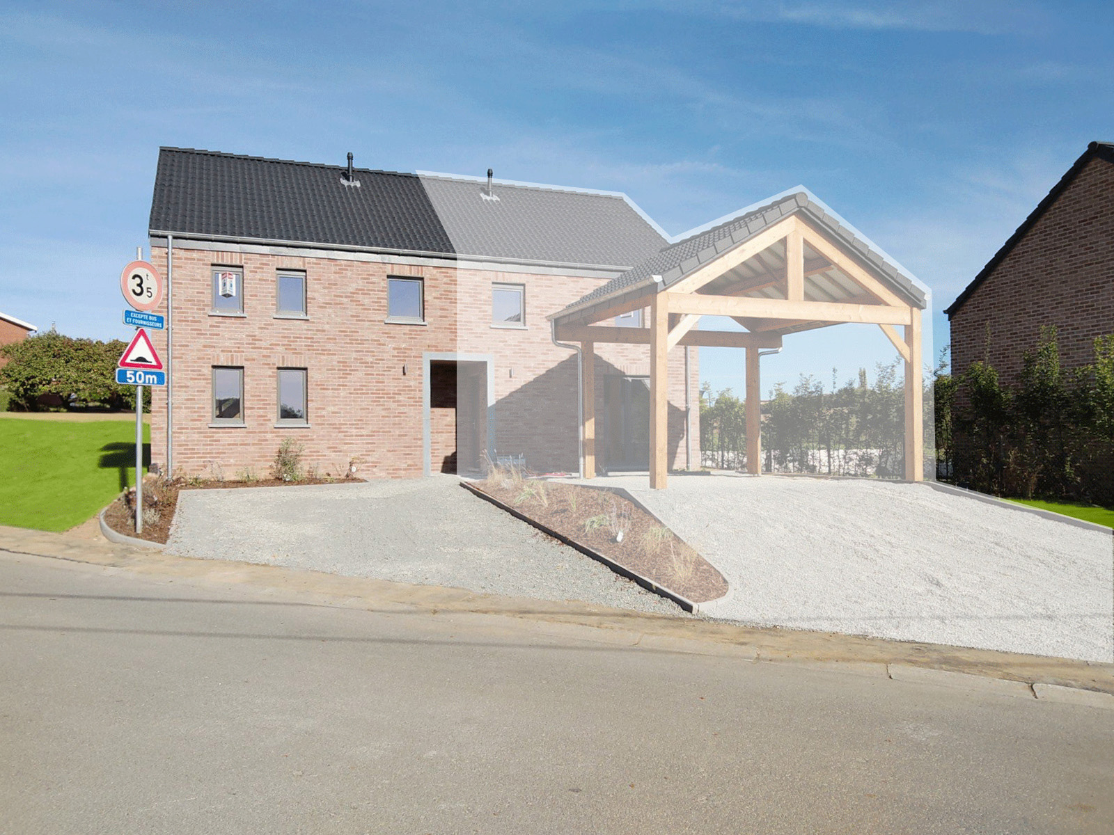 Le bien est une maison neuve 3 façades, implantée sur un terrain d’environ 4,43 ares, avec une terrasse de ± 15 m² orientée nord. La surface habitable atteint ± 102 m² et l’ensemble comprend 1 place de parking extérieure + 1 place carport.