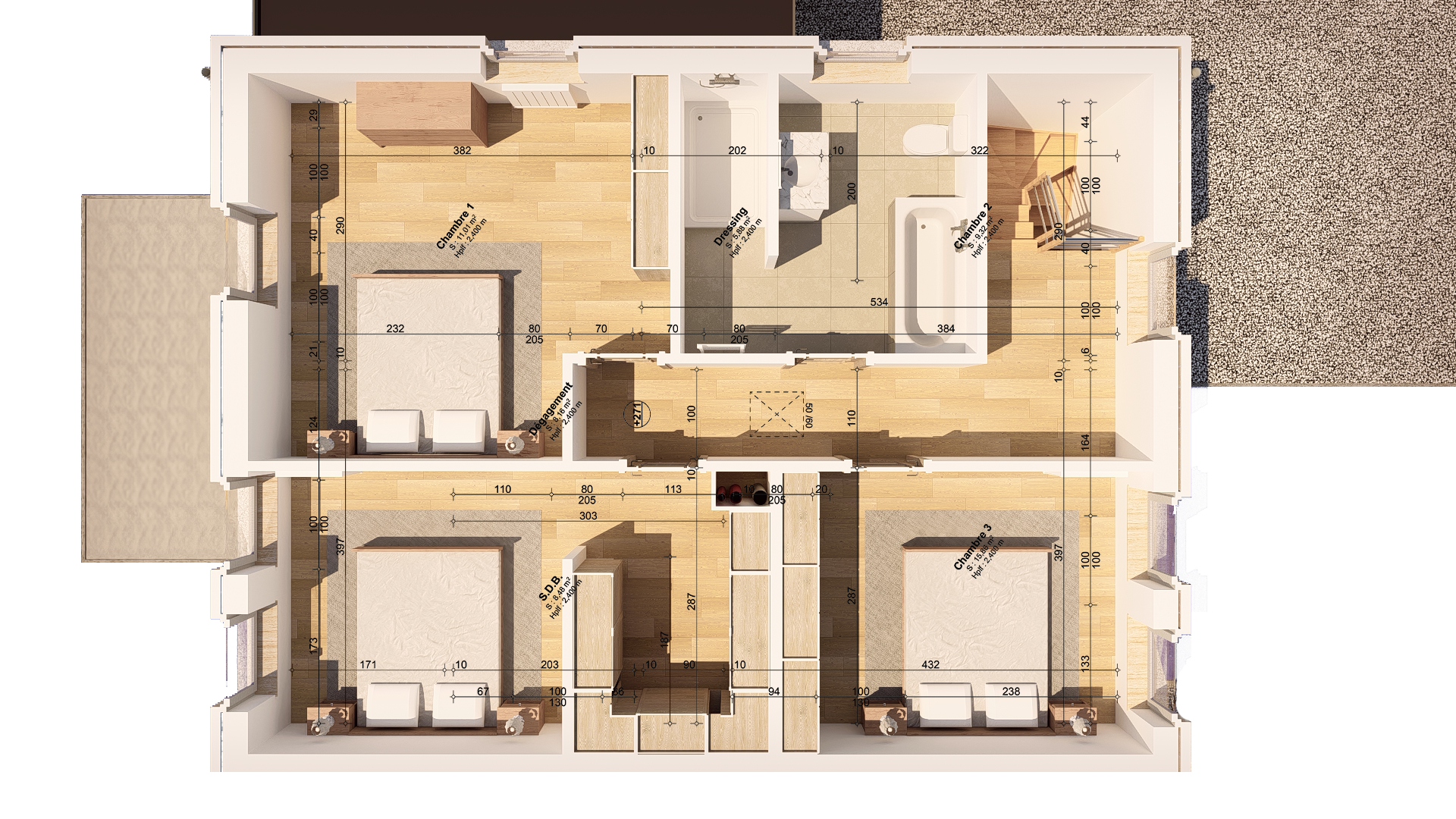 • 1 chambre principale avec dressing