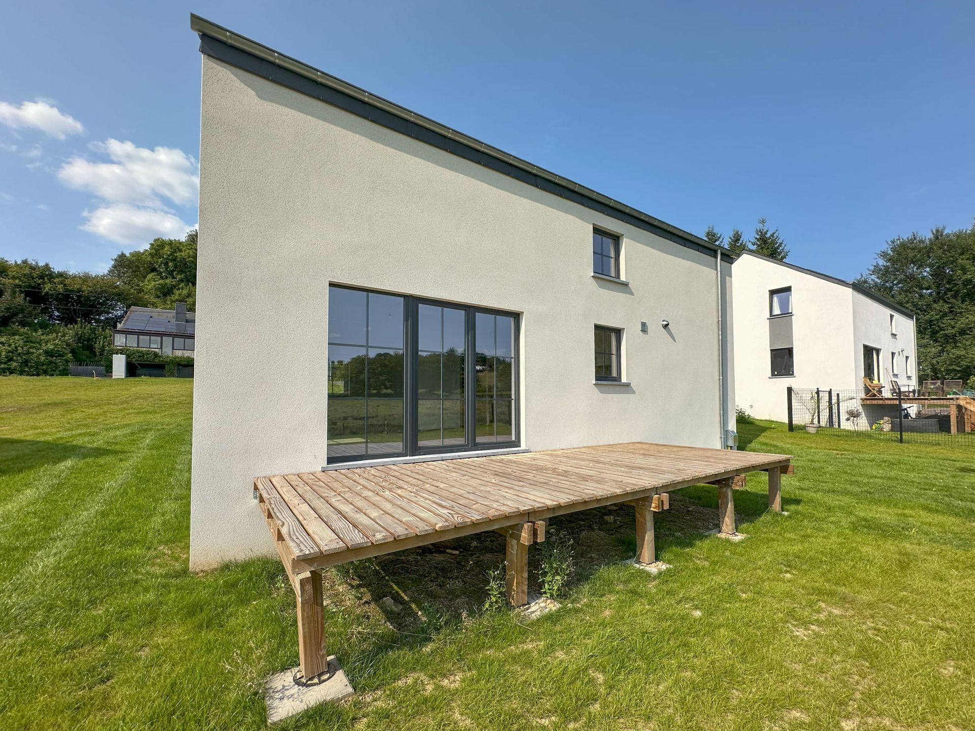 C’est à Saint Hubert, village au cœur des Ardennes belges que nous vous proposons cette superbe maison neuve 4 façades sur un terrain de +/- 10 ares. Ville bien connue pour être entourée de forêts, parcs et réserves naturelle c’est un véritable paradis pour les amoureux de nature. Saint Hubert ne sacrifie pas la commodité au profit de la nature, vous y trouverez toutes les infrastructures nécessaires au quotidien : écoles, commerces de proximité, services médicaux et même des équipements sportifs et culturels. Cette maison implantée sur un terrain de +/- 10 ares et orientée plein sud se compose au rez de chaussée d’un hall d’entrée, d’un WC, d’un séjour ouvert sur une cuisine équipée de +/- 37 m²d’un garage/buanderie de +/- 20m², d’une terrasse en bois de +/- 16 m².