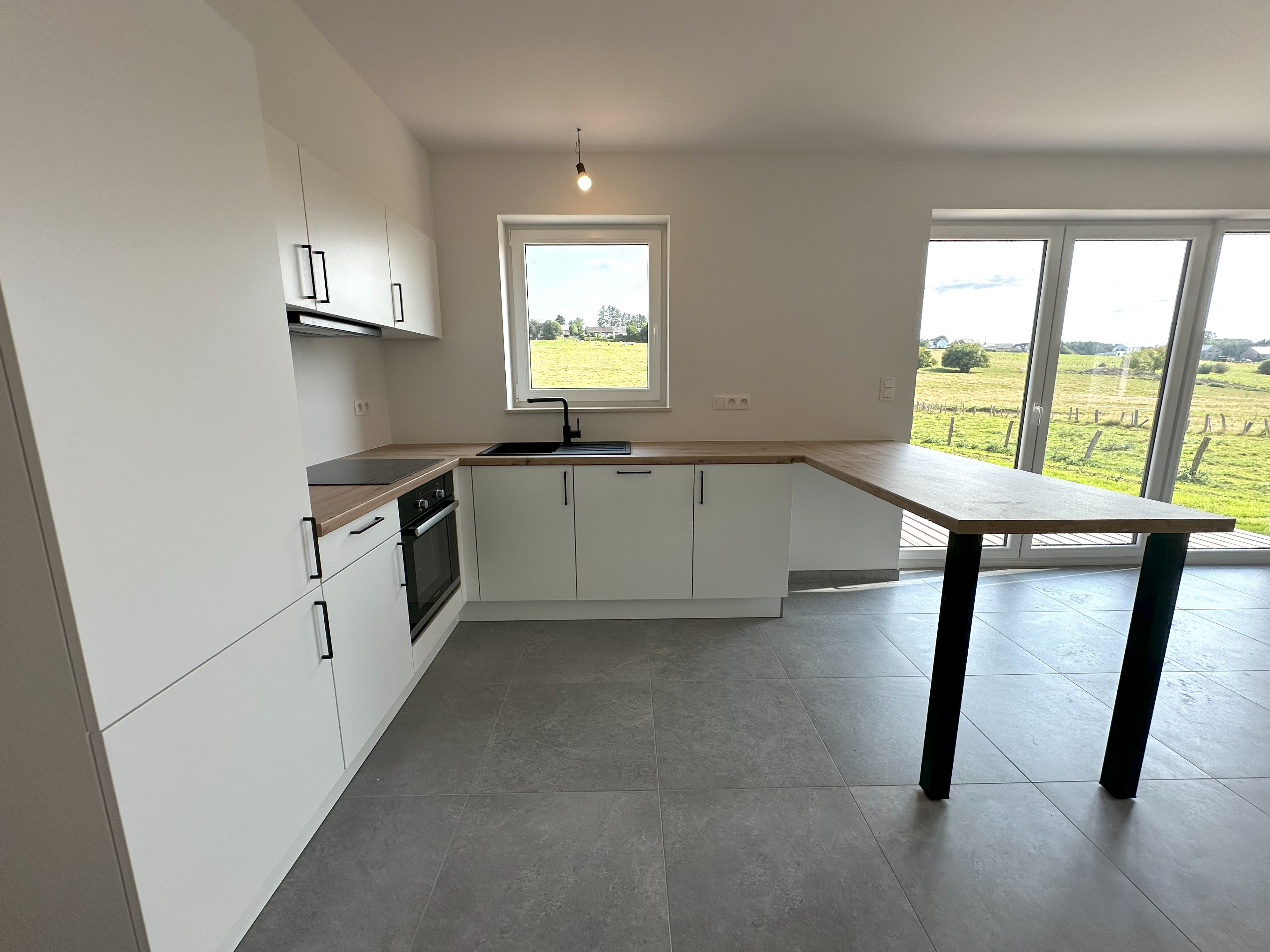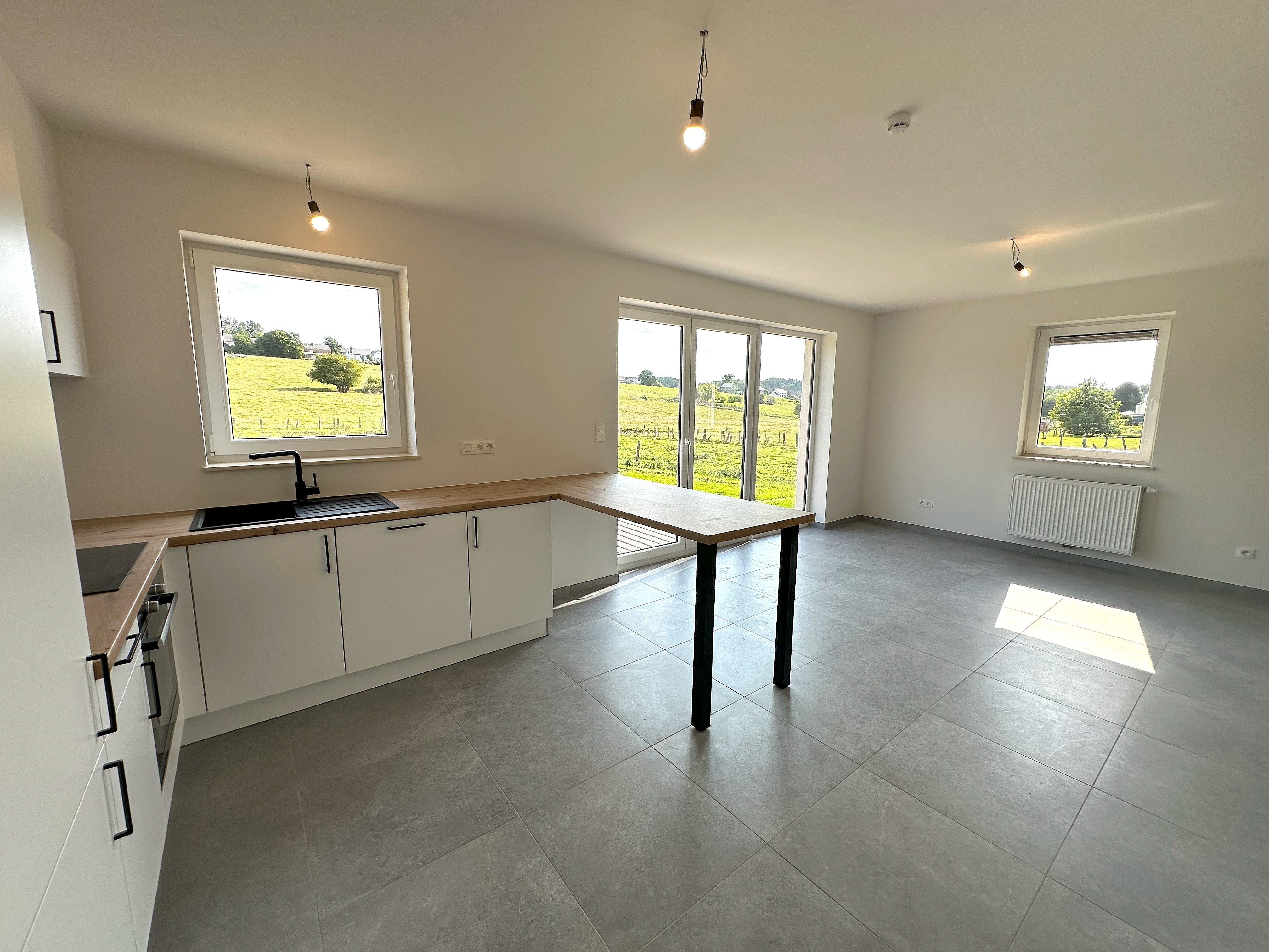 C’est à Saint Hubert, village au cœur des Ardennes belges que nous vous proposons cette superbe maison neuve 4 façades sur un terrain de +/- 13 ares. Ville bien connue pour être entourée de forêts, parcs et réserves naturelle c’est un véritable paradis pour les amoureux de nature. Saint Hubert ne sacrifie pas la commodité au profit de la nature, vous y trouverez toutes les infrastructures nécessaires au quotidien : écoles, commerces de proximité, services médicaux et même des équipements sportifs et culturels. Cette maison implantée sur un terrain de +/- 13 ares et orientée plein sud se compose au rez de chaussée d’un hall d’entrée, d’un WC, d’un séjour ouvert sur une cuisine équipée de +/- 36 m², d’une buanderie de +/- 8m², d’un bureau de 10 m², d’une terrasse en bois de +/- 16 m².