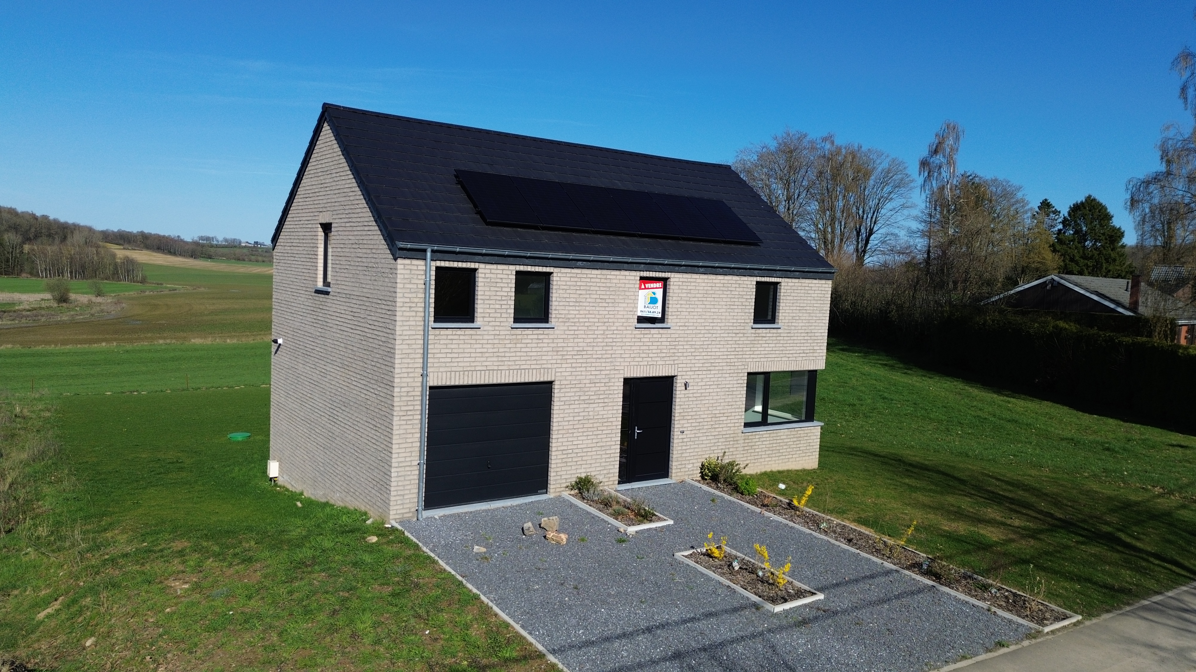 Profitez d’un bien neuf avec isolation poussée, d’une chaudière au gaz Vaillant, de 6 panneaux photovoltaïques et qui offre un PEB A garantissant confort, économies d’énergie et respect de l’environnement assurant un cadre de vie agréable et économe.