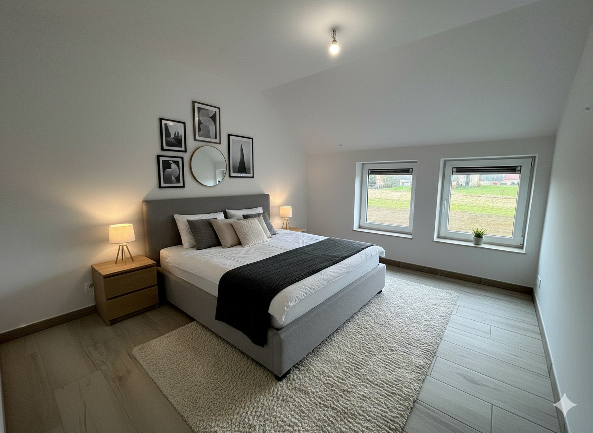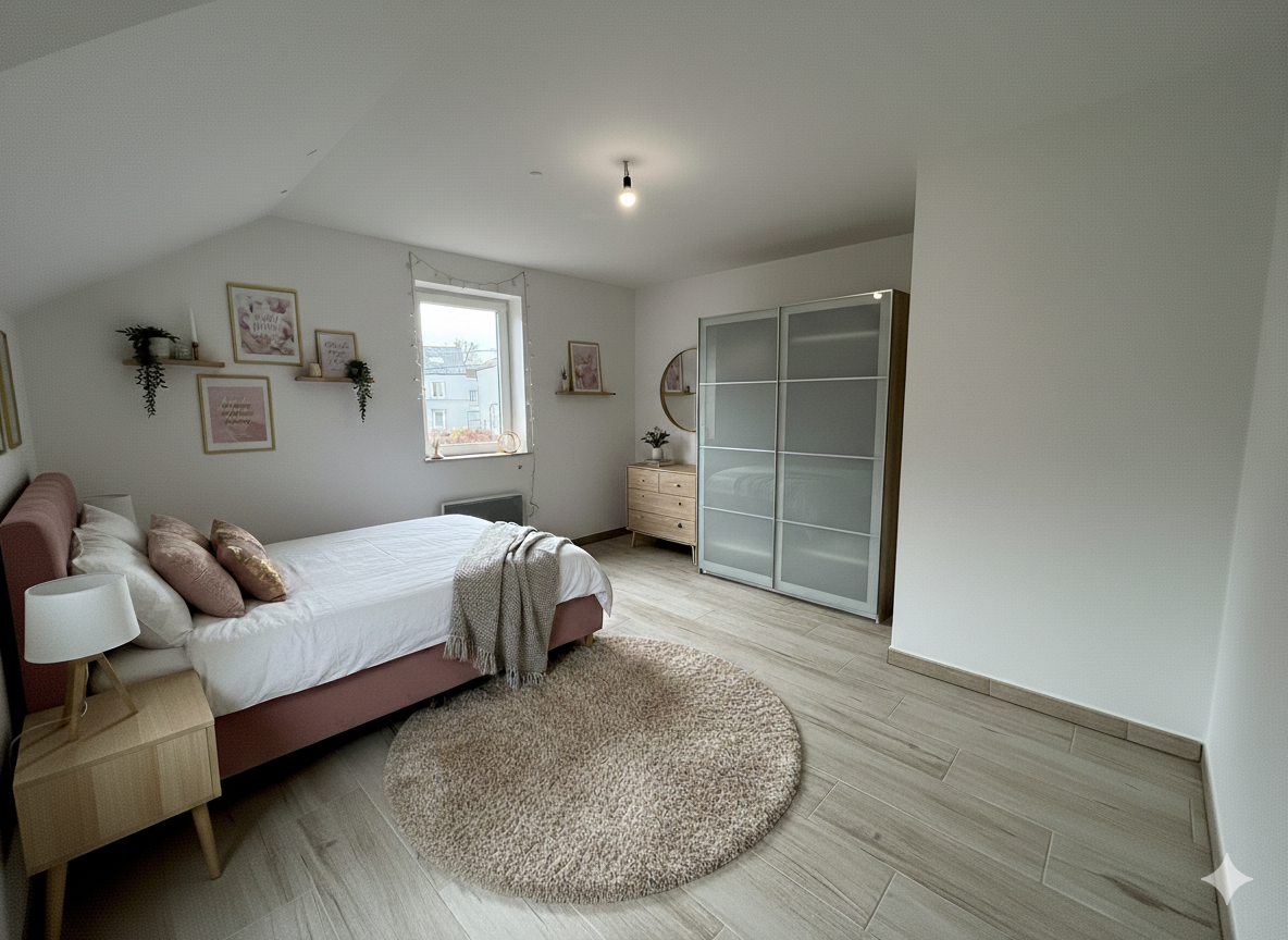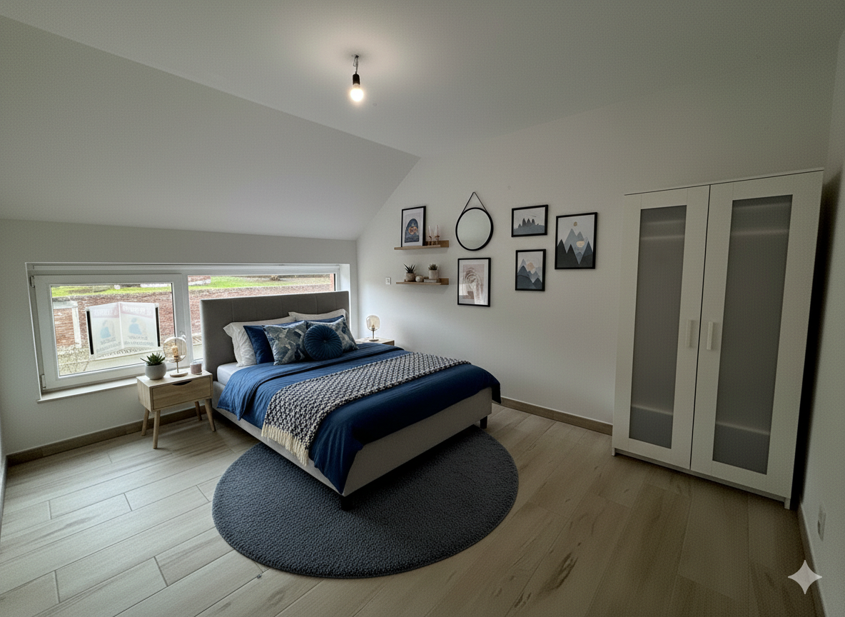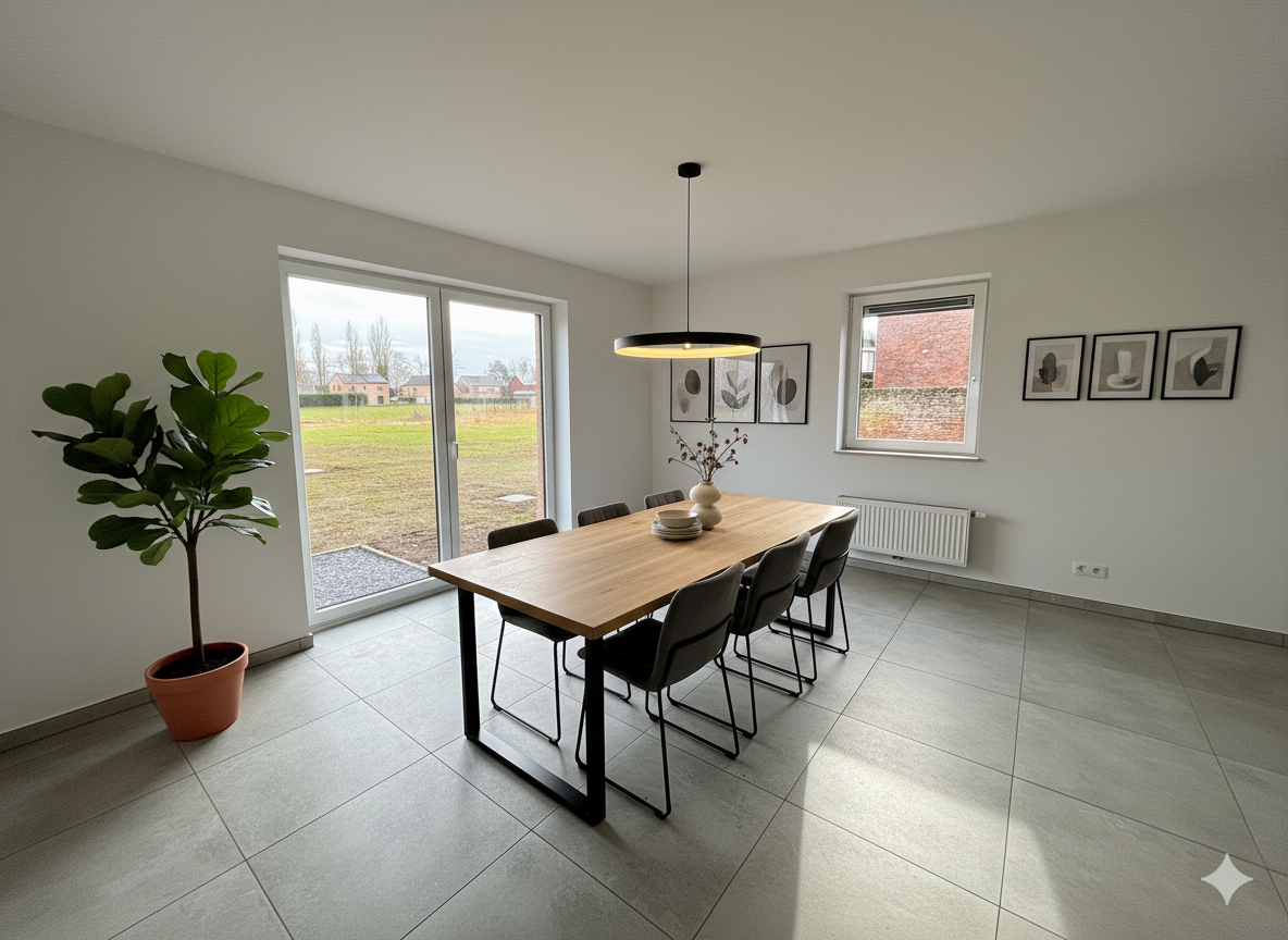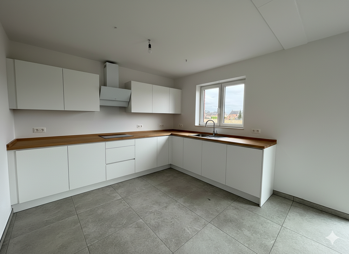 Il s’agit d’une maison neuve trois façades, orientée Sud-Est côté terrasse, développant une surface habitable de +/- 150 m² sur un terrain de 9 ares. Le jardin privatif bénéficie d’une terrasse de +/- 15 m² bien exposée. Le bien dispose d’un garage intégré, assurant le stationnement et les fonctions annexes.