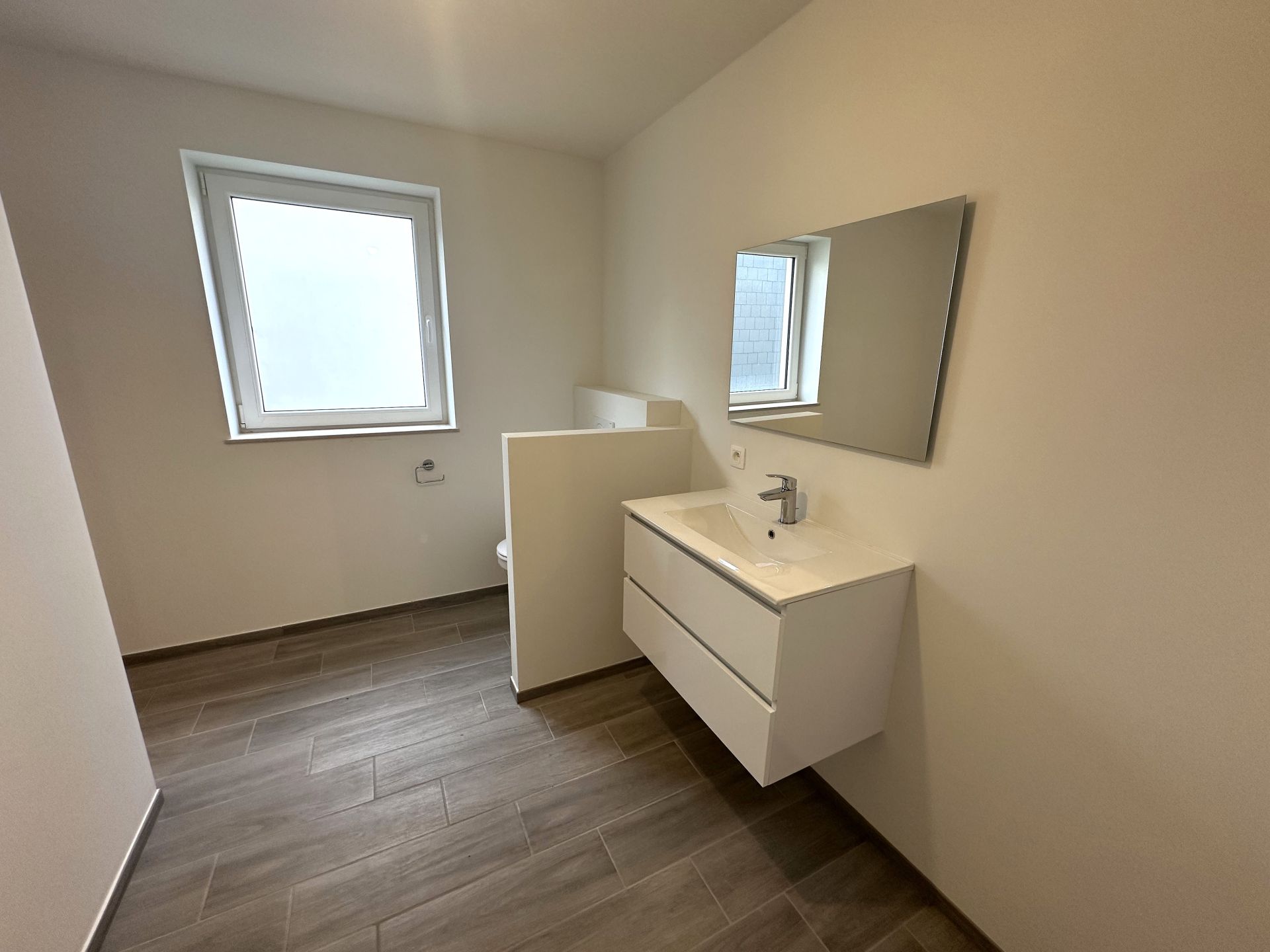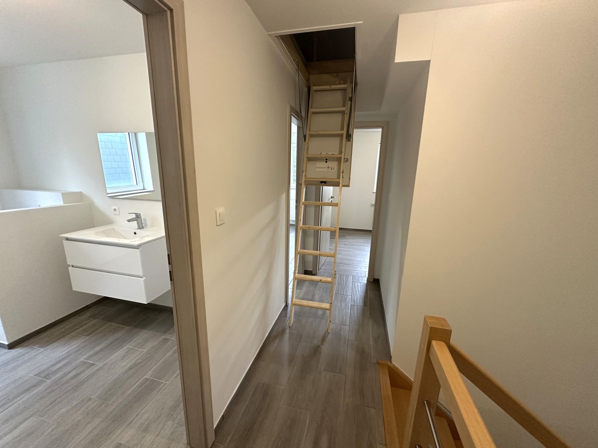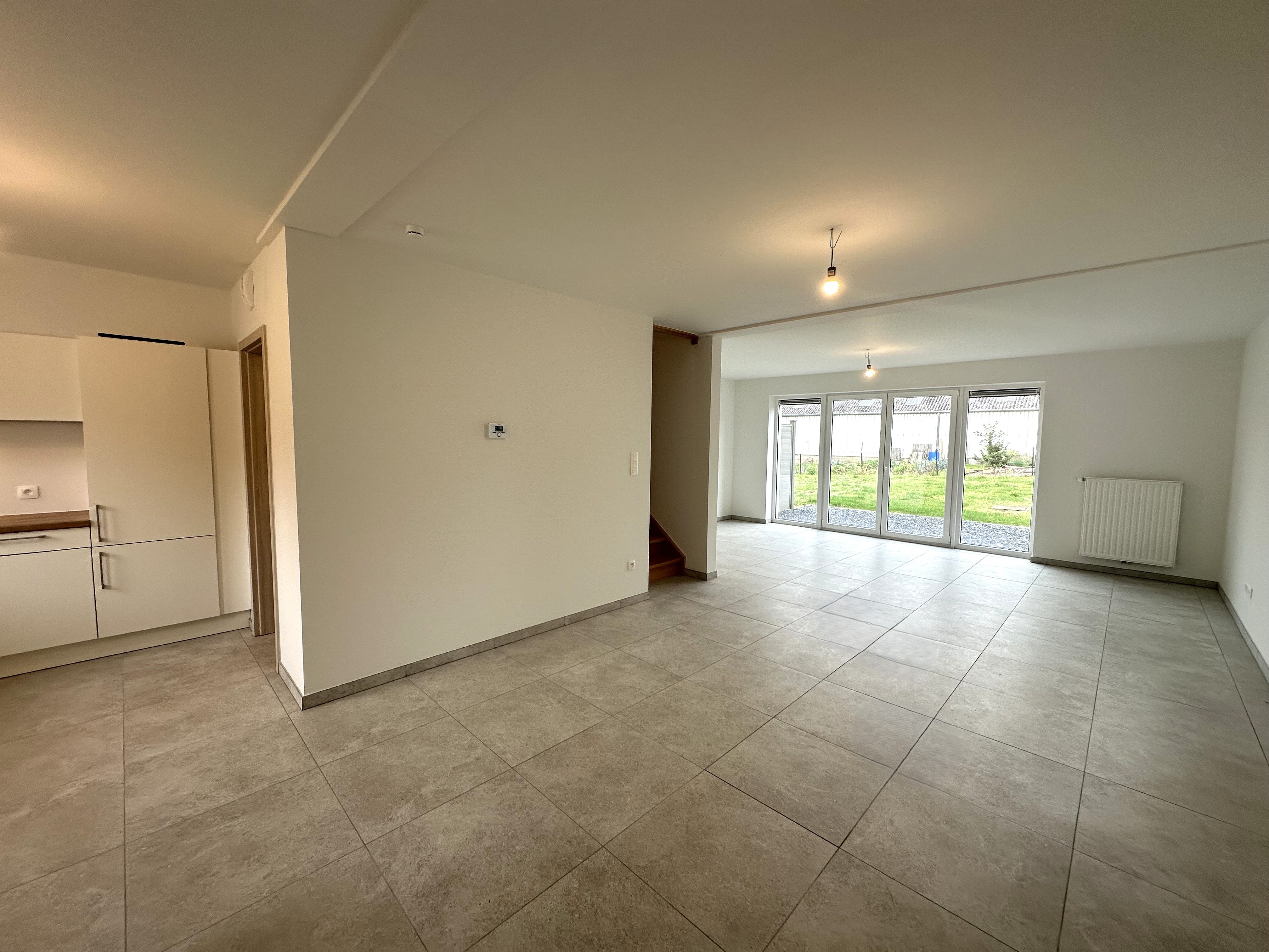 La maison orientée ouest et sur un terrain de +/- 314 m² se compose au rez-de-chaussée d’un hall d’entrée, d’un wc, d’un séjour ouvert sur une cuisine super équipée de +/- 42 m², d’une buanderie de +/- 5 m². Terrasse en bois de +/- 18m². A l’étage, hall de nuit, 1 chambre parentale avec espace dressing de +/- 18m², 2 chambres de 12 m² et 10 m² salle de bain avec douche, meuble lavabo et WC.