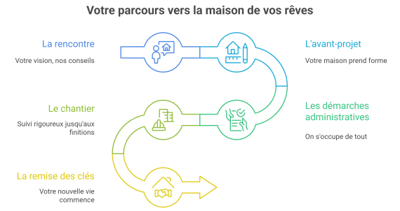 En moyenne, comptez 12 à 18 mois au total : 3 à 6 mois pour les démarches administratives (permis, financement) et 8 à 12 mois de construction pour une maison clé sur porte.