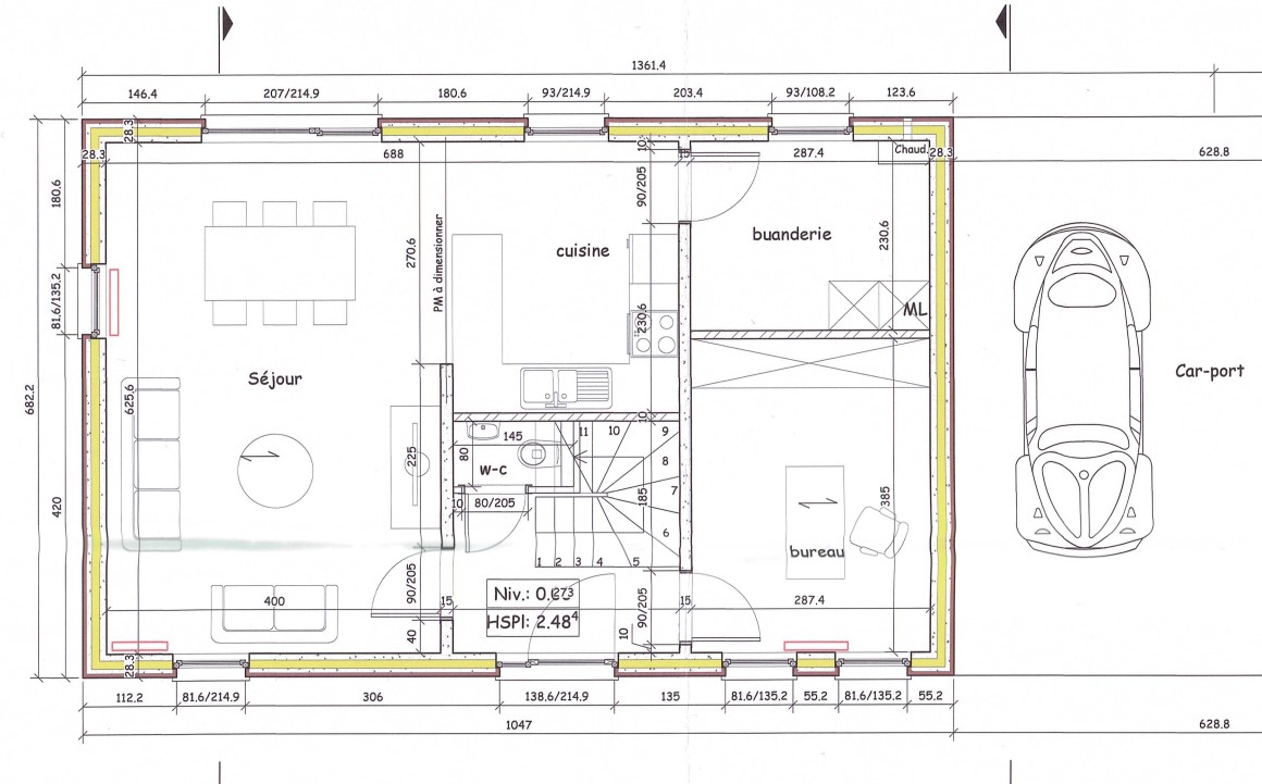 Isolation des murs 10 cm de polyuréthane.