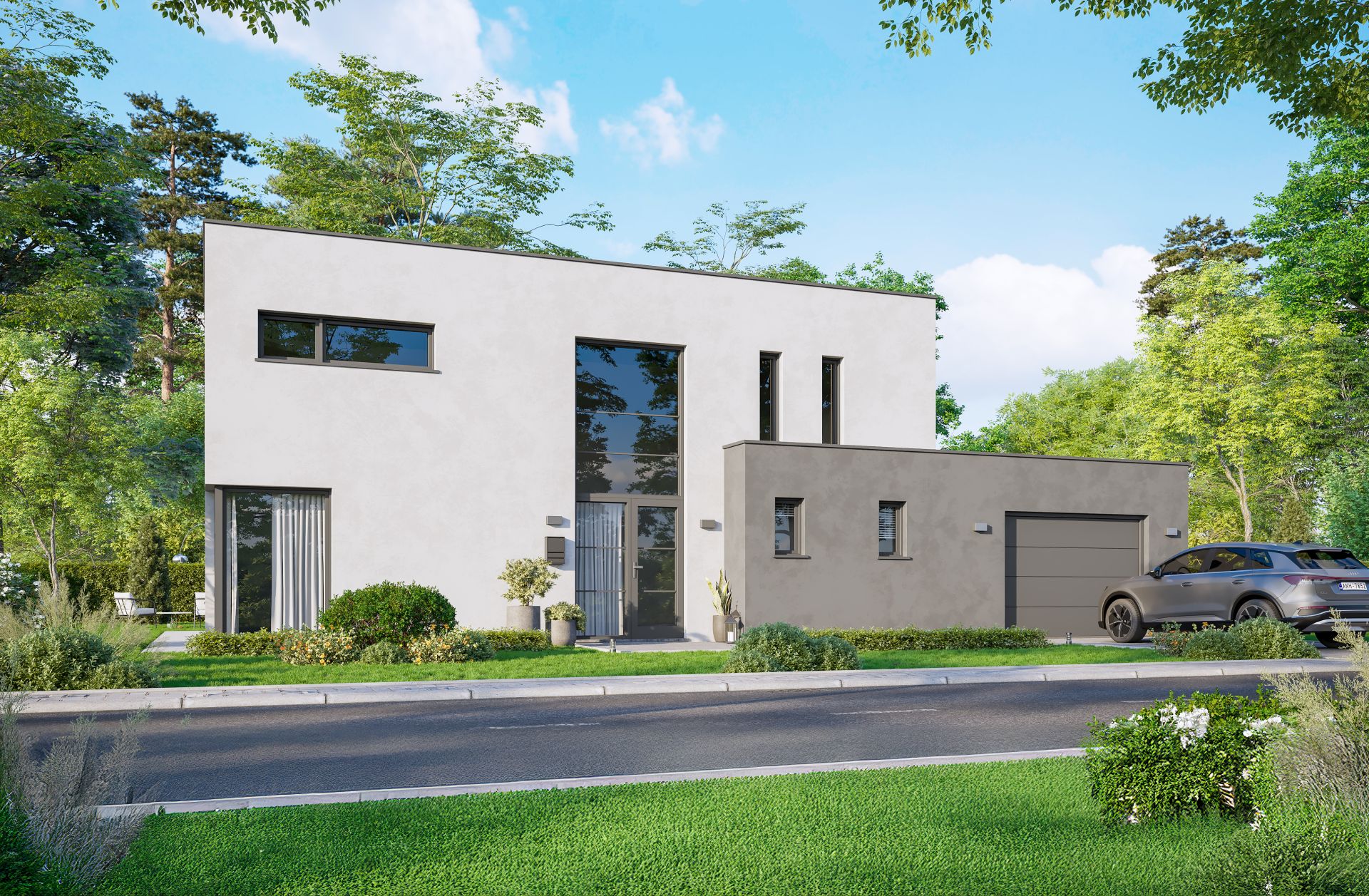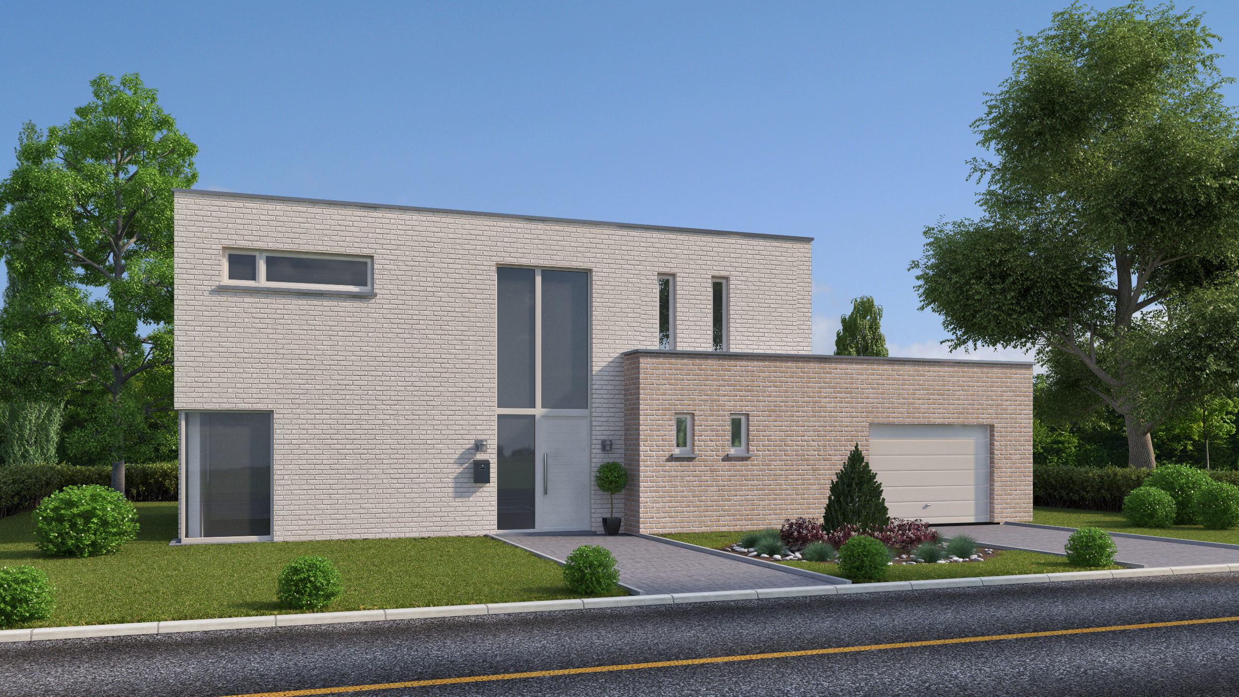 Voici un plan ordonnancé sur un hall central distribuant clairement les espaces de vie, de rangement et de travail. Convivial et fonctionnel, cette maison se distingue par son garage disposé en annexe du corps de logis. Par ses dimensions, cette habitation en deux parties répond idéalement à ceux et celles qui rêvent d’espace et d’évasion et ce grâce aux grands espaces de vie tous éclairés naturellement.