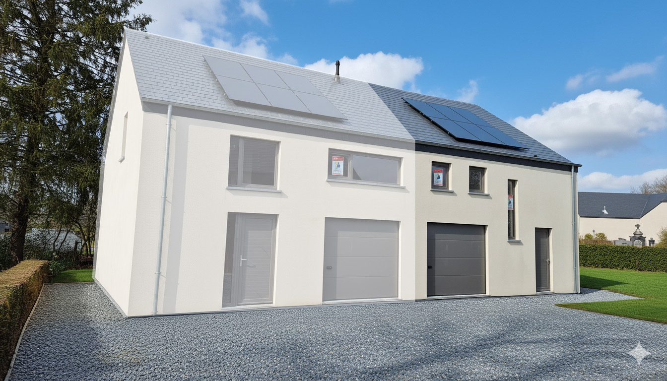 Type de châssis Châssis en PVC, double vitrage super isolant, porte de garage sectionnelle isolée.