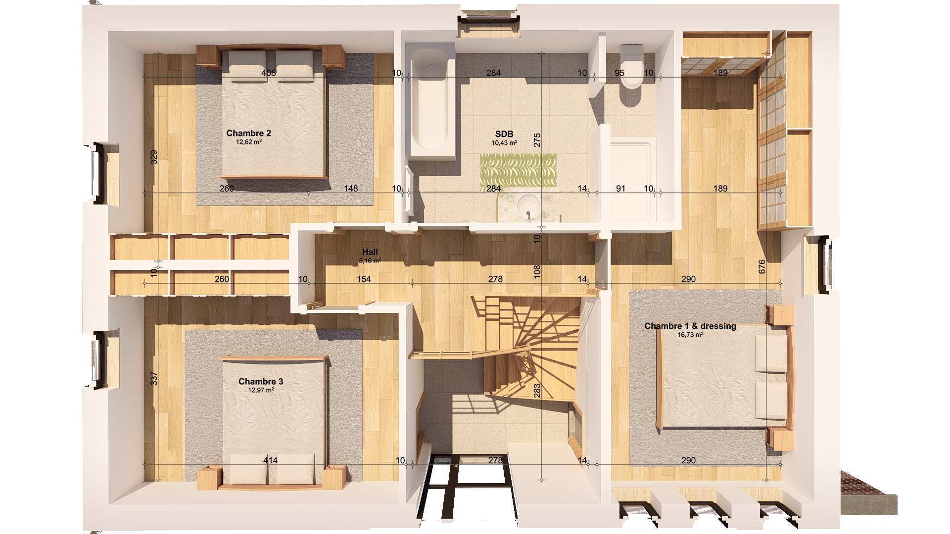 • 1 chambre principale avec dressing