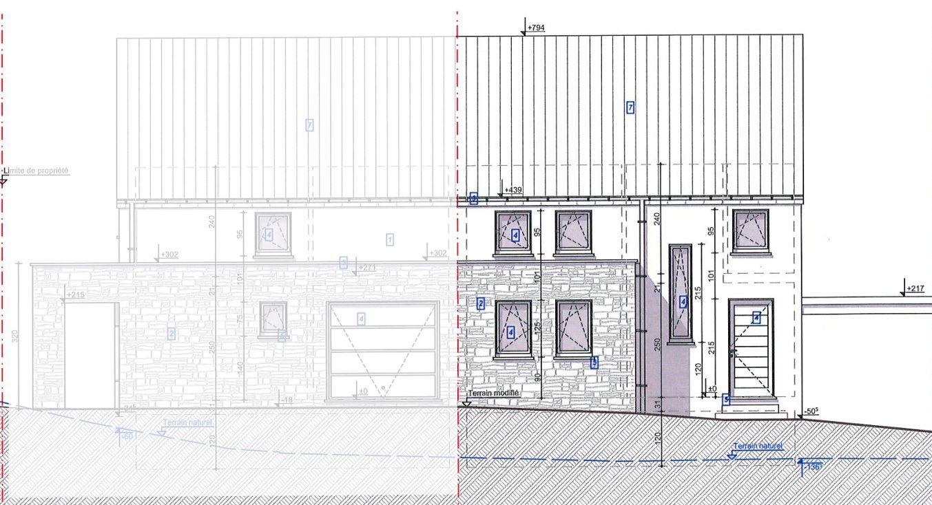 La maison, d’une surface habitable de +/-168 m², est implantée sur un terrain de +/-5,20 ares. Bâtie en trois façades, elle dispose d’une terrasse orientée à l’est.